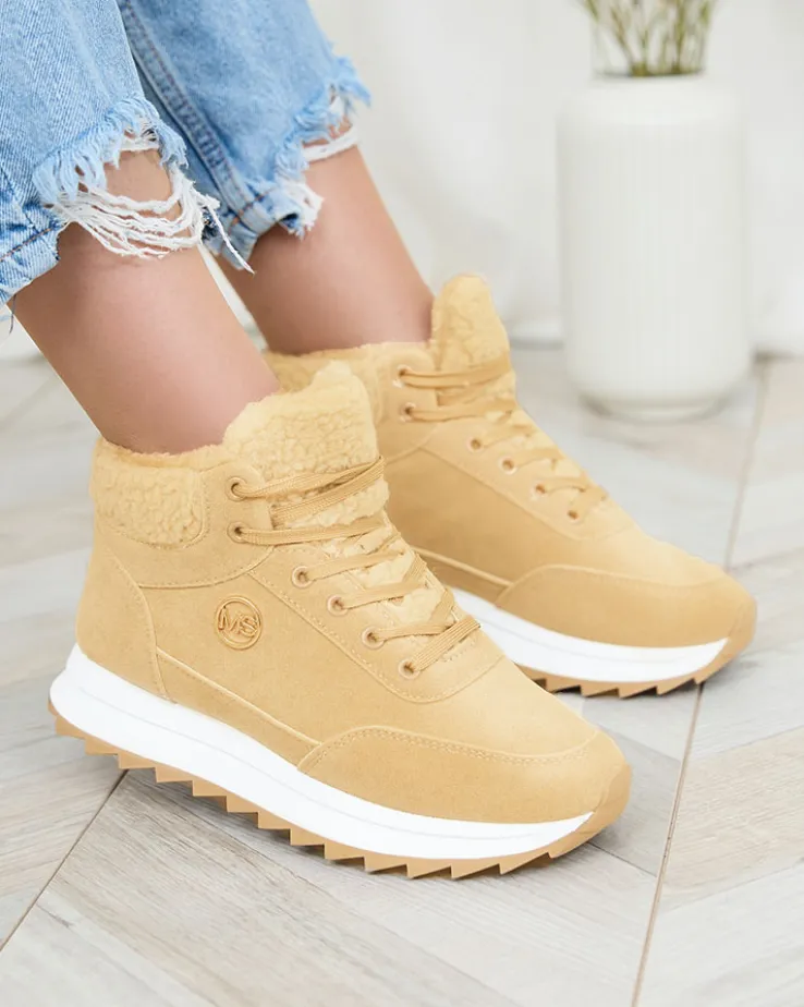 - Damskie ocieplane buty sportowe na grubszej podeszwie. Sznurowana cholewka wykonana z nubuku ekologicznego. W środku miękkie futerko. Super dodatek do Twoich zimowych outfitów w stylu casual!
