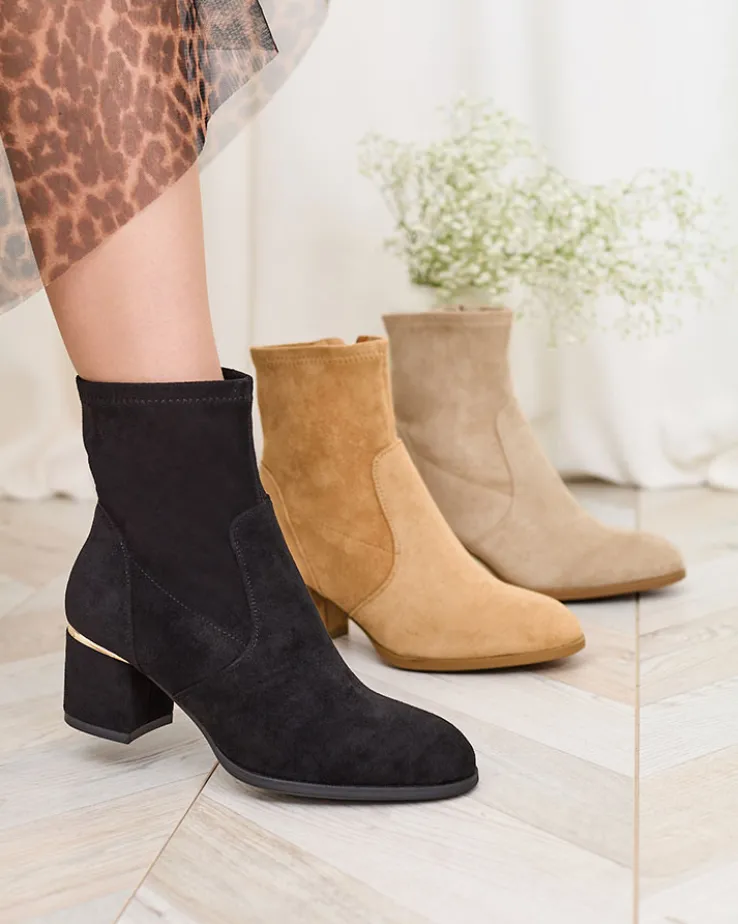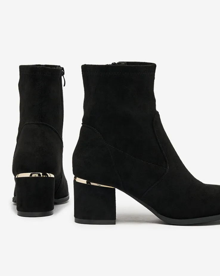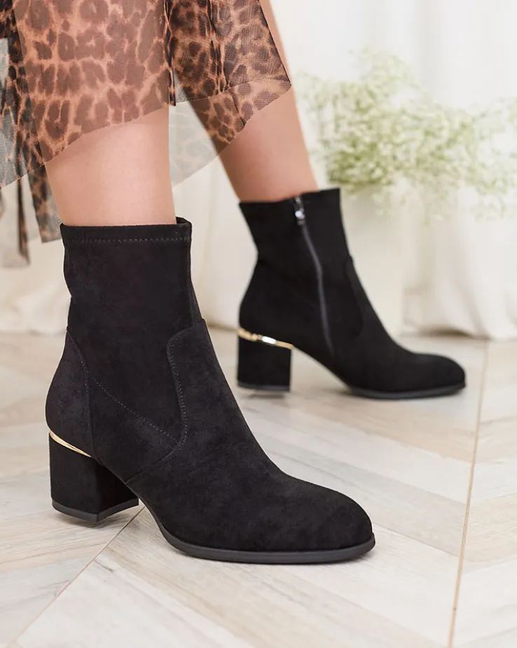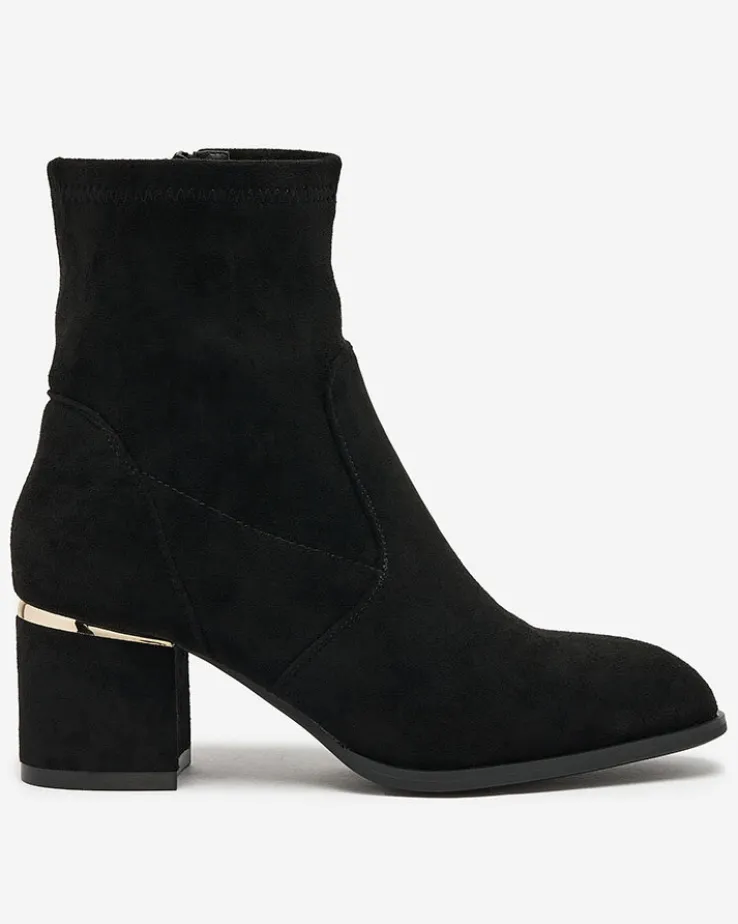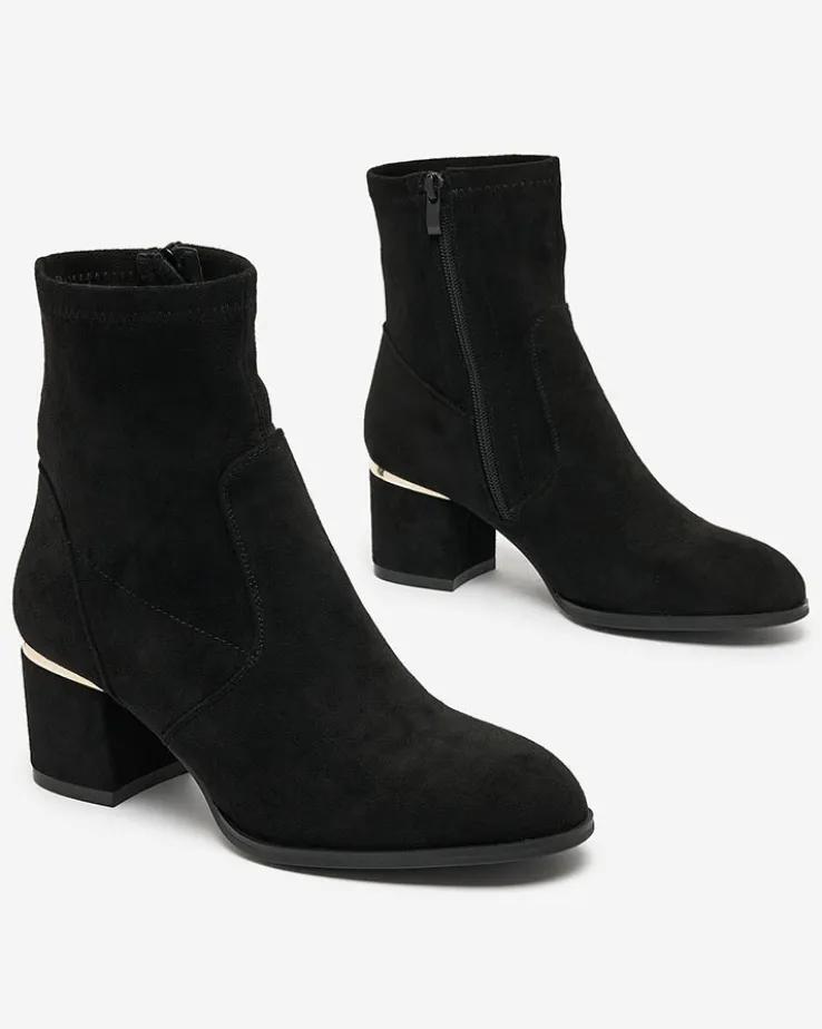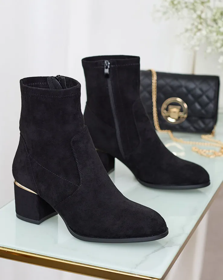 - Stylowe damskie botki na niskim słupku. Cholewka wykonana ze skóry ekologicznej zamszowej, wkładka z materiału a’la futerko. Obuwie jest zapinane na suwak. Świetny wybór na jesień!