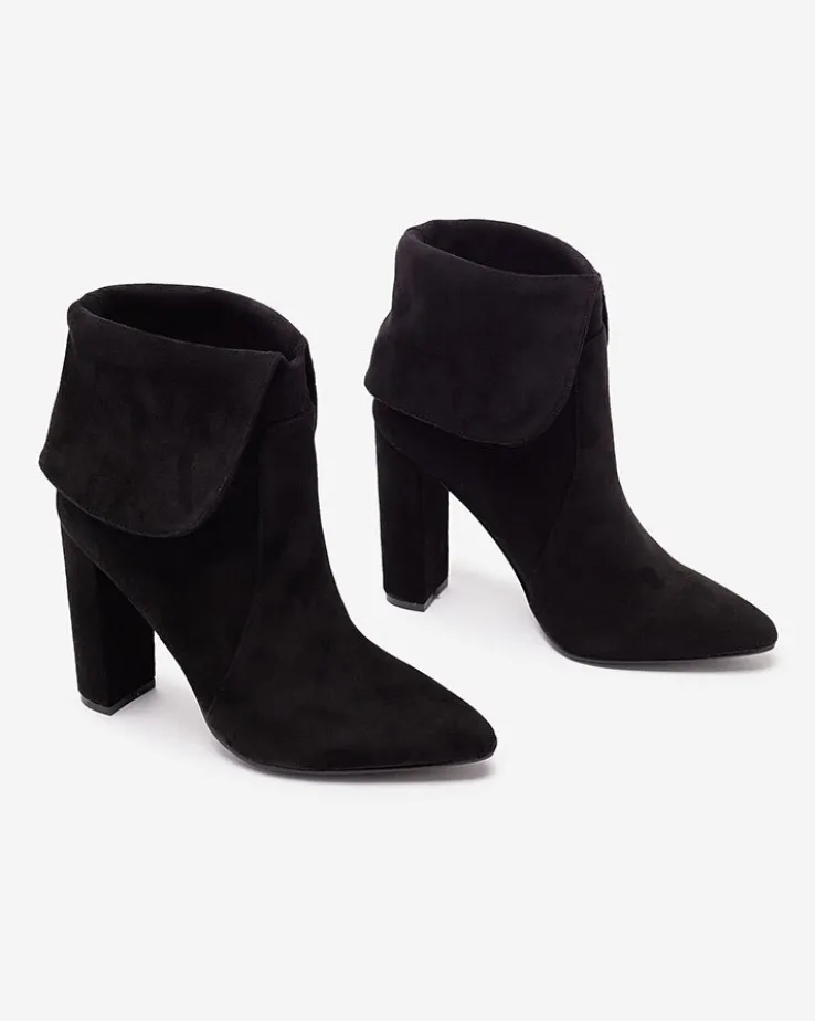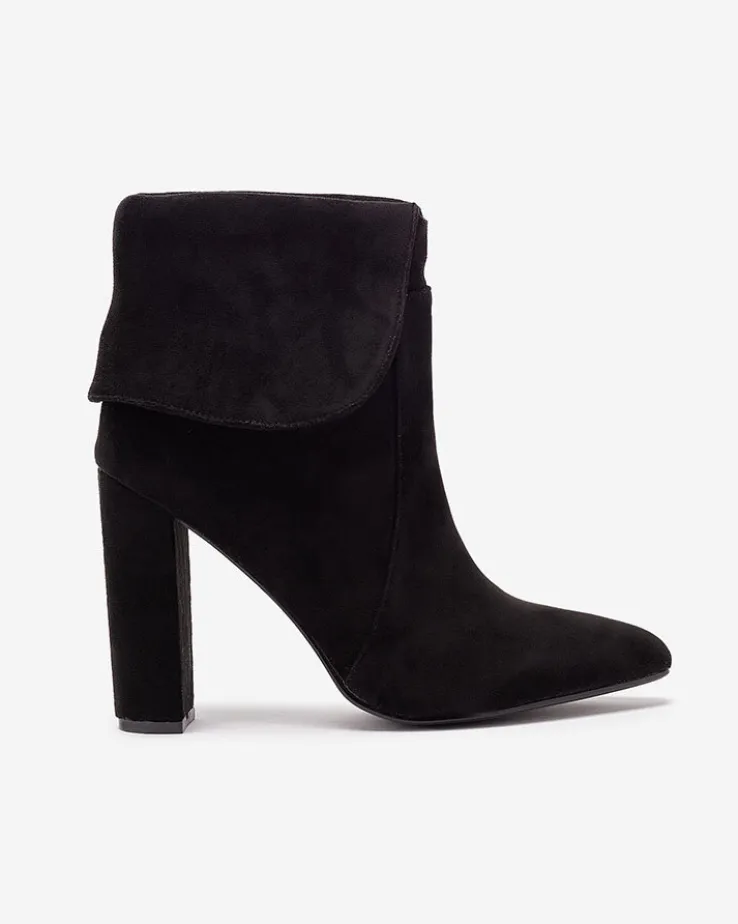 - Stylowe damskie eko-zamszowe botki to idealne rozwiązanie na chłodniejsze dni. Cholewka jest wsuwana, w środku eko-skórzana wkładka. Model na wyższym słupku i z noskiem w szpic. Super dodatek do Twoich casualowych outfitów!