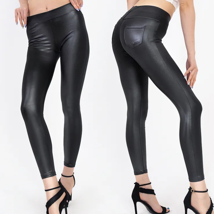 - Super modne tregginsy wykonane ze śliskiej tkaniny a’la skóra. Model posiada wysoki stan, elastyczną gumę w pasie oraz dwie wsuwane kieszenie z tyłu. Nadają się do wielu oryginalnych stylizacji.