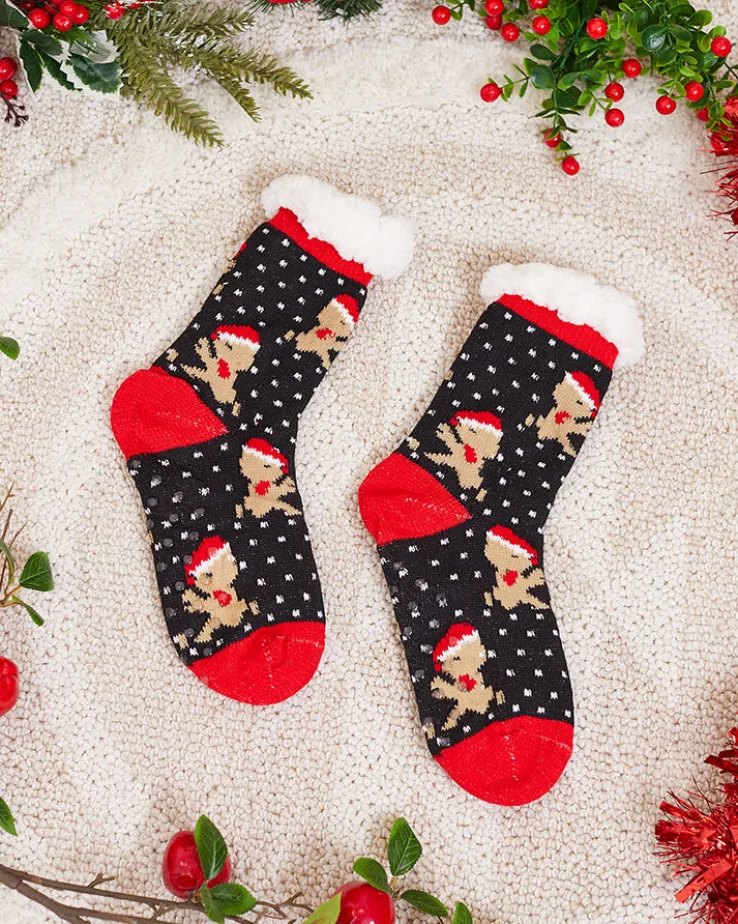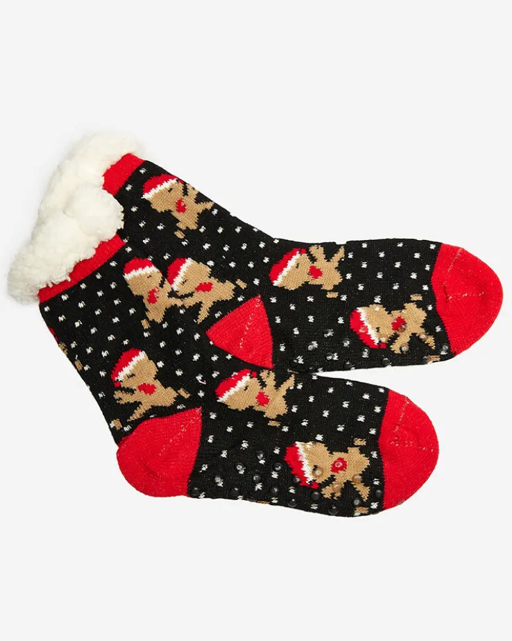 Royalfashion Czarne damskie skarpetki ze świątecznym wzorem
