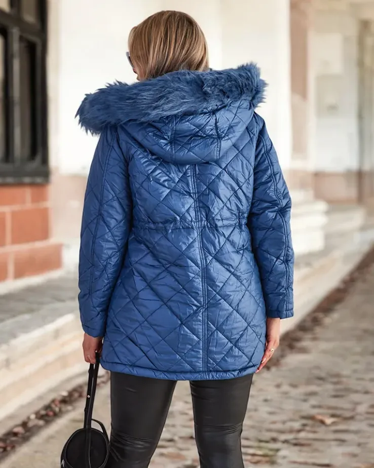 - Rewelacyjna dwustronna kurtka damska przed kolano wykonana ze śliskiej tkaniny i przyjemnego, miękkiego materiału a’la futerko. Model ten posiada kaptur z futerkiem oraz dwie kieszenie. Kurtka zapinana na zamek, posiada ściągacz w pasie.