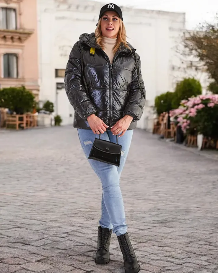 - Ciepła damska kurtka zimowa. Model pikowany, posiada 2 zapinane kieszenie, wypełnienie z puchu syntetycznego oraz zapięcie na suwak. UWAGA: Dokładność pomiaru (+/-) 1 cm.
