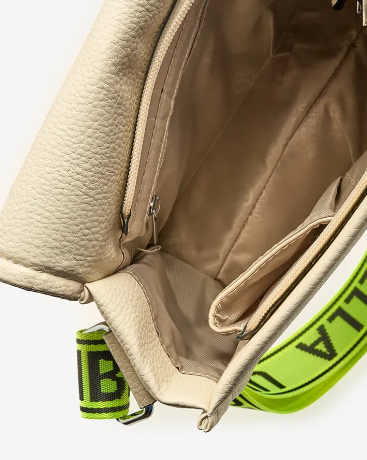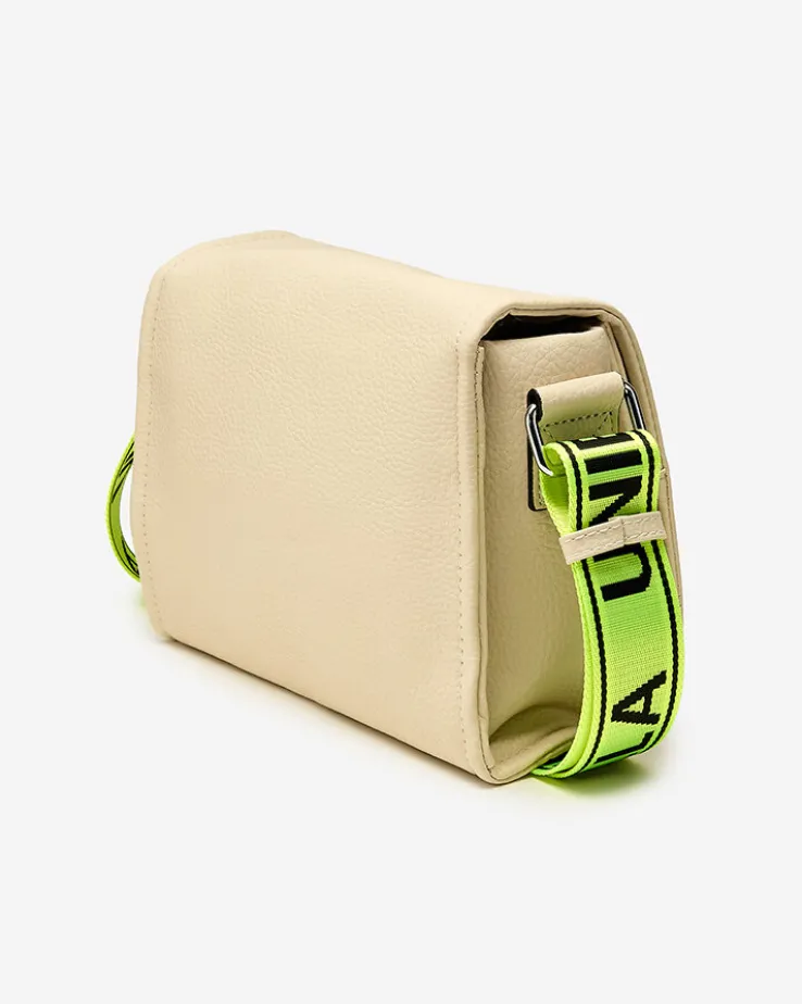 - Wyjątkowa mała torebka damska wykonana ze skóry ekologicznej z neonowo żółtym, regulowanym paskiem. Model posiada 4 kieszonki. Połączenie elegancji i sportowego stylu!