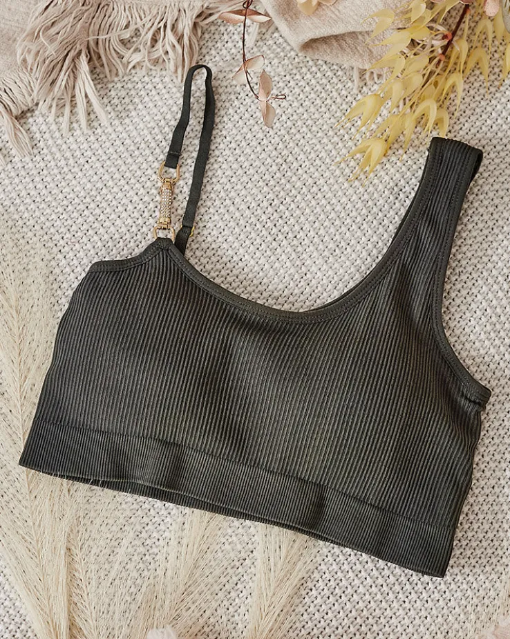 - Klasyczny damski biustonosz wykonany z elastycznego, przyjemnego materiału. Model z ozdobnym ramiączkiem i z wyjmowanymi wkładkami, wykończony na dole gumą. Idealnie dopasuje się do ciała.