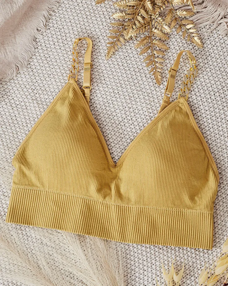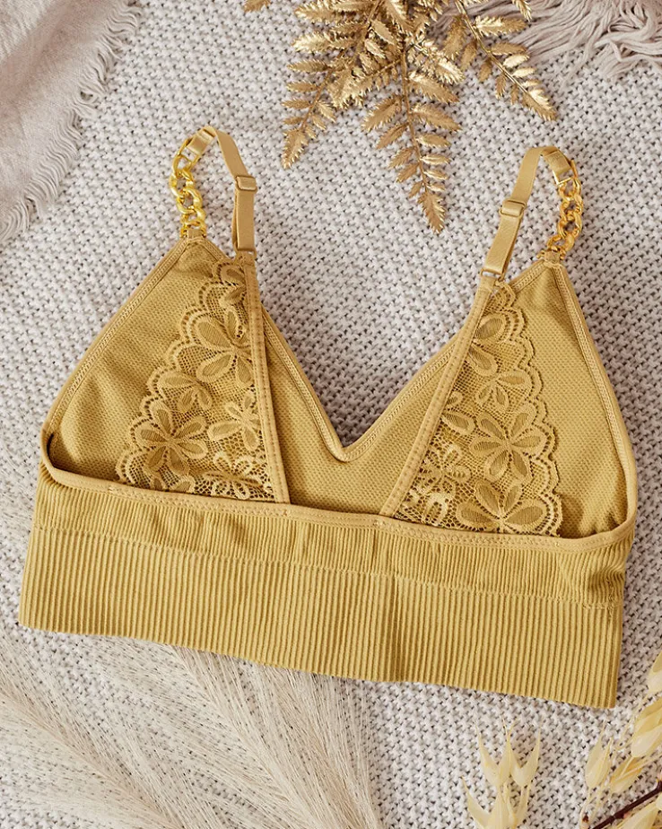 - Klasyczny damski biustonosz wykonany z elastycznego, przyjemnego materiału. Model z ozdobnymi, regulowanymi ramiączkami i wyjmowanymi wkładkami, wykończony wstawkami z koronki gumą na dole. Idealnie dopasuje się do ciała.