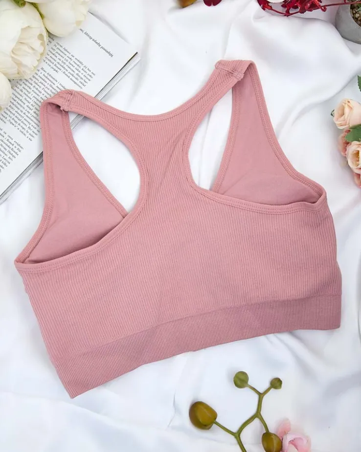 - Sportowy damski biustonosz wykonany z elastycznego, przyjemnego materiału. Model z nieregulowanymi, łączonymi ramiączkami, z zapięciem z przodu na haftki, wykończony na dole szeroką gumą. Idealnie dopasuje się do ciała.