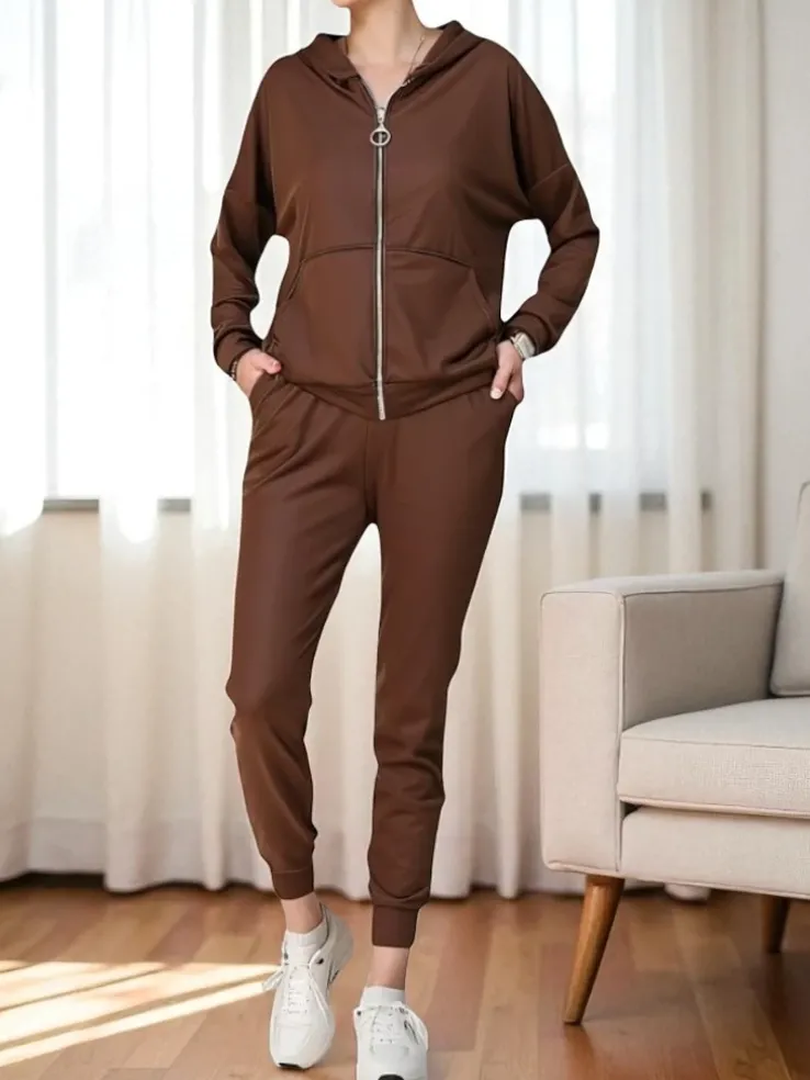 - Damski komplet a’la welurowy wykonany z przyjemnego materiału. Bluza rozpinana z kapturem. Długie spodnie z gumą w pasie, 2 kieszeniami. Poczuj styl w tym wspaniałym komplecie!