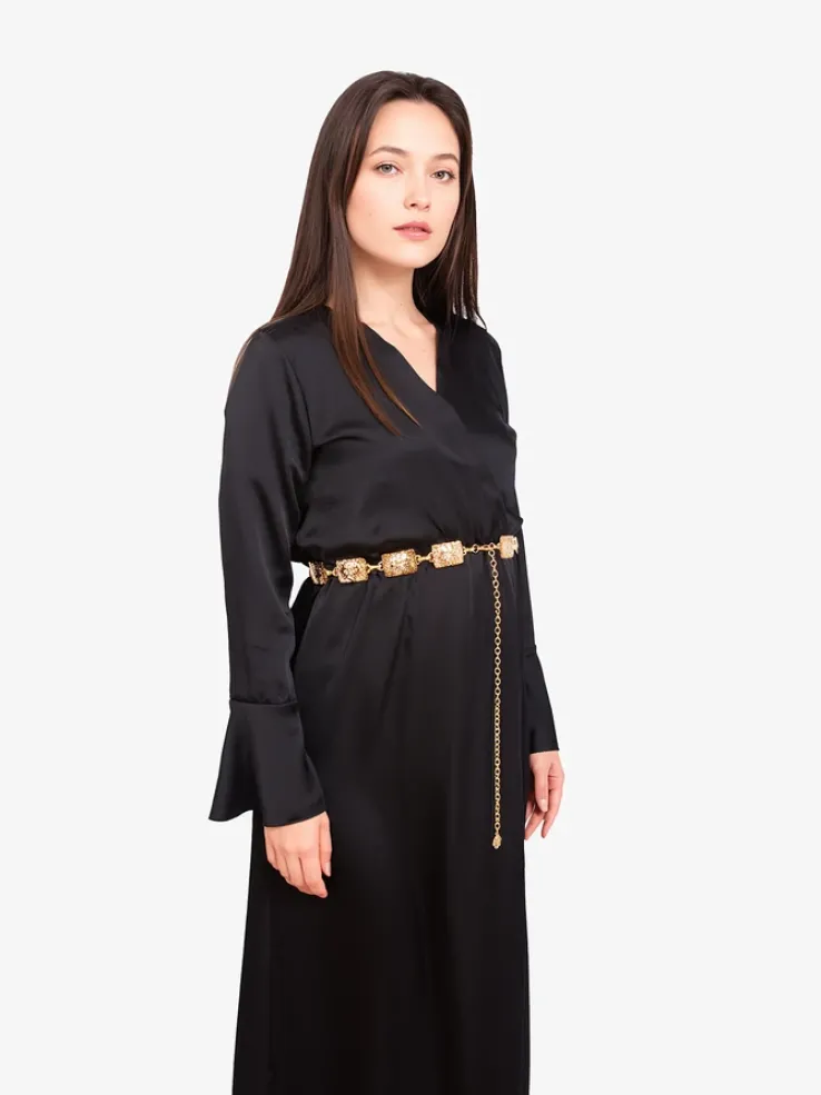 - Damski pasek wykonany z metalu, posiada ozdobny wzór. Będzie atrakcyjnym dodatkiem do wielu wieczorowych stylizacji!