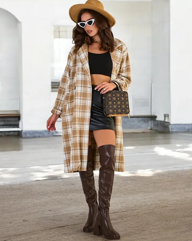 - Oryginalny damski płaszcz w kratę. Model posiada długie rękawy oraz 2 kieszenie. Model posiada długie rękawy i jest zapinany na guziki. Idealna propozycja na jesień! UWAGA: Dokładność pomiaru (+/-) 1 cm.