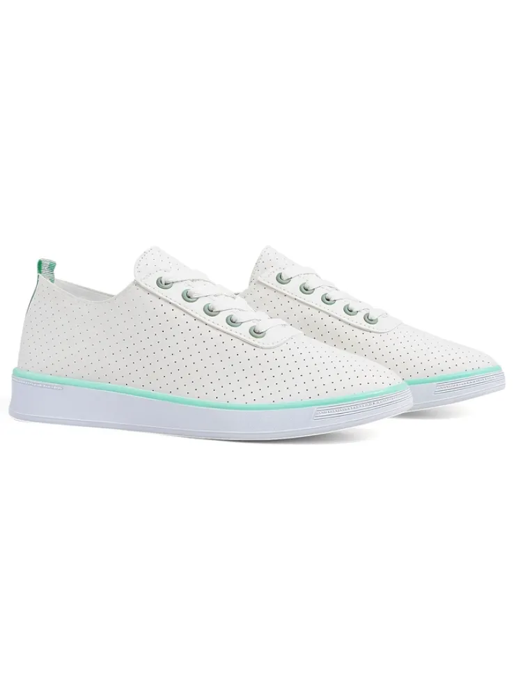 - Ażurowe damskie buty sportowe wykonane ze skóry ekologicznej i tkaninowej wkładki. Model na płaskiej podeszwie. Będą świetnie pasowały do codziennych stylizacji!.