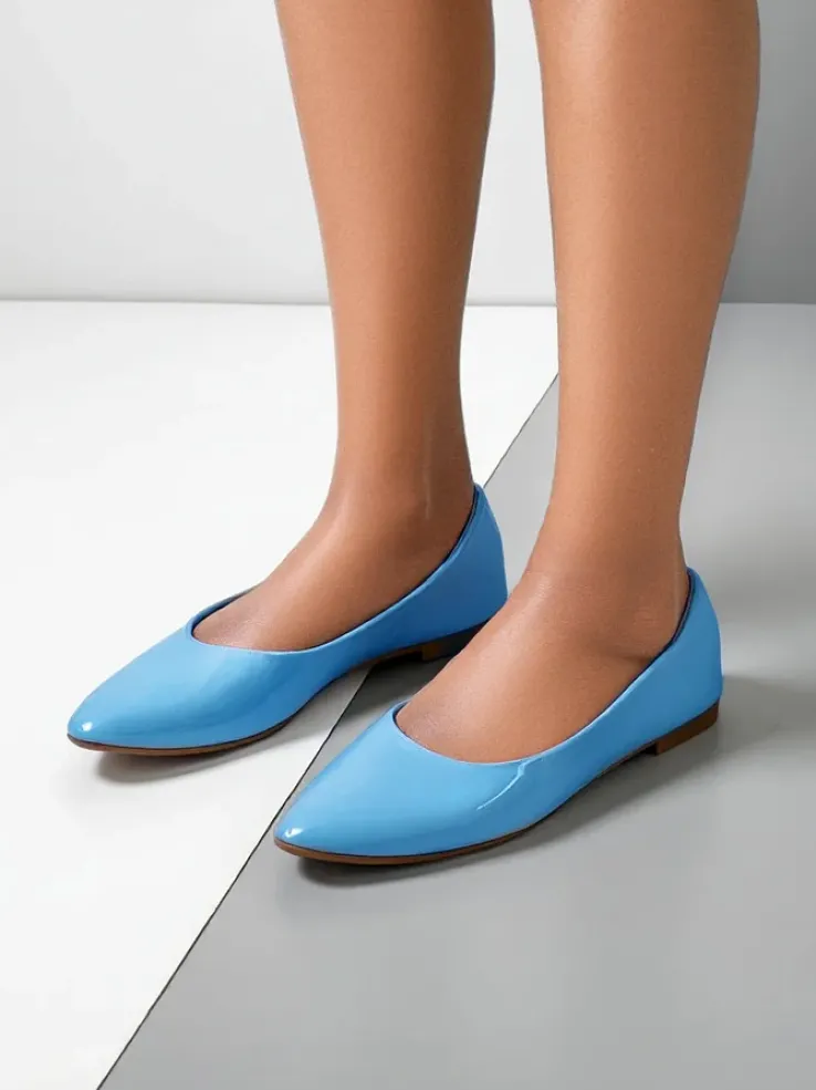 - Wyjątkowe baleriny wykonane ze skóry ekologicznej lakierowanej z noskiem w szpic. Miękka eko-skórzana wkładka dostarczy komfortu. Idealnie się sprawdzą do eleganckich i modnych stylizacji!