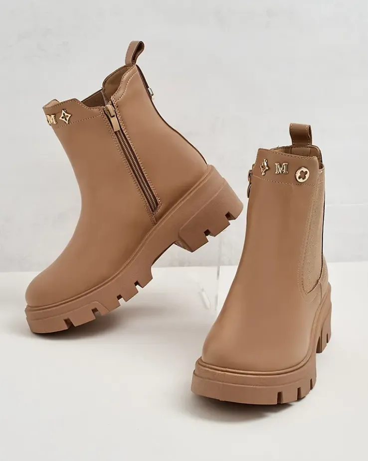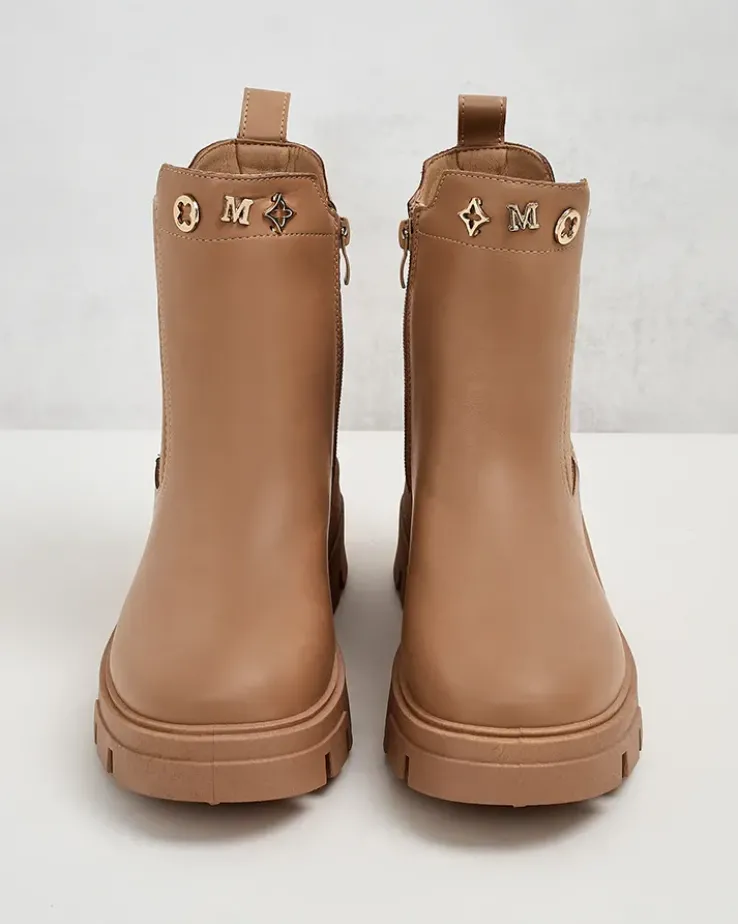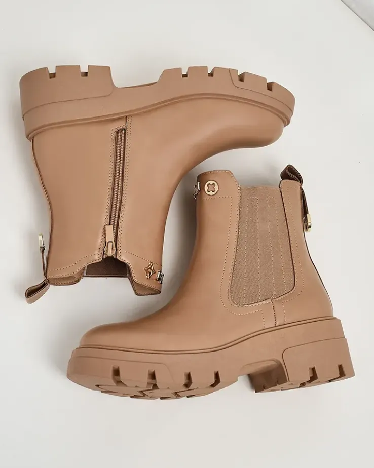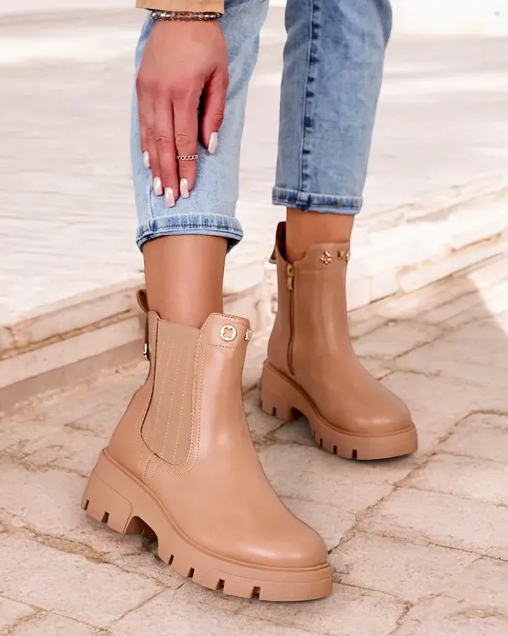 - Damskie botki na grubszej podeszwie, wykonane z eko skóry. Środek wyłożony delikatnym futerkiem, model wsuwany. Idealne na jesień!