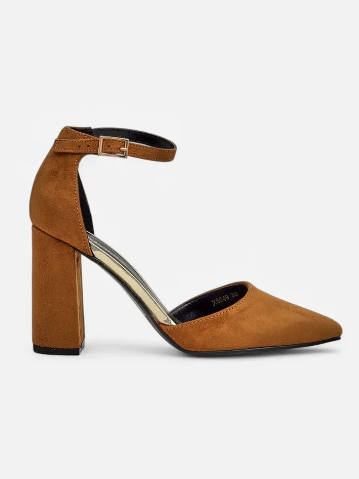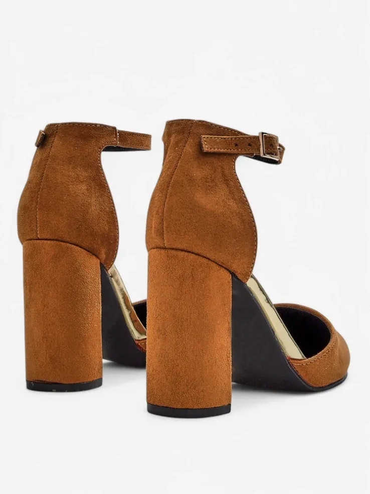 - Eleganckie damskie czółenka na słupku, wykonane ze skóry ekologicznej zamszowej. Środek buta jest wyłożony skórą ekologiczną, a nosek w szpic nadaje elegancji!