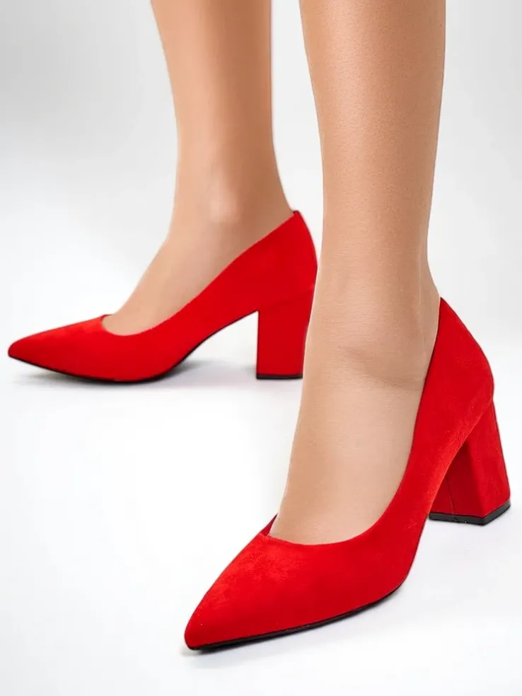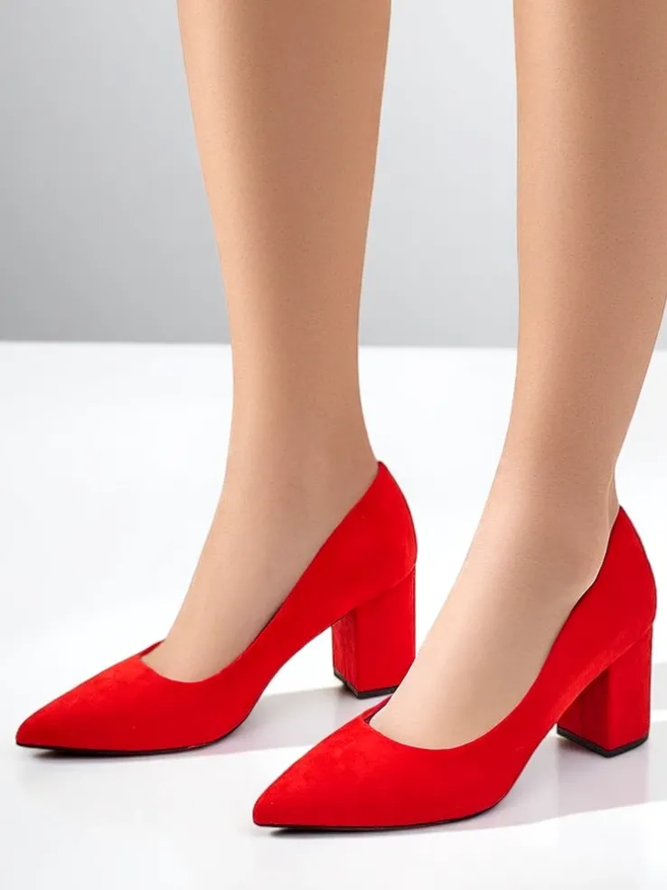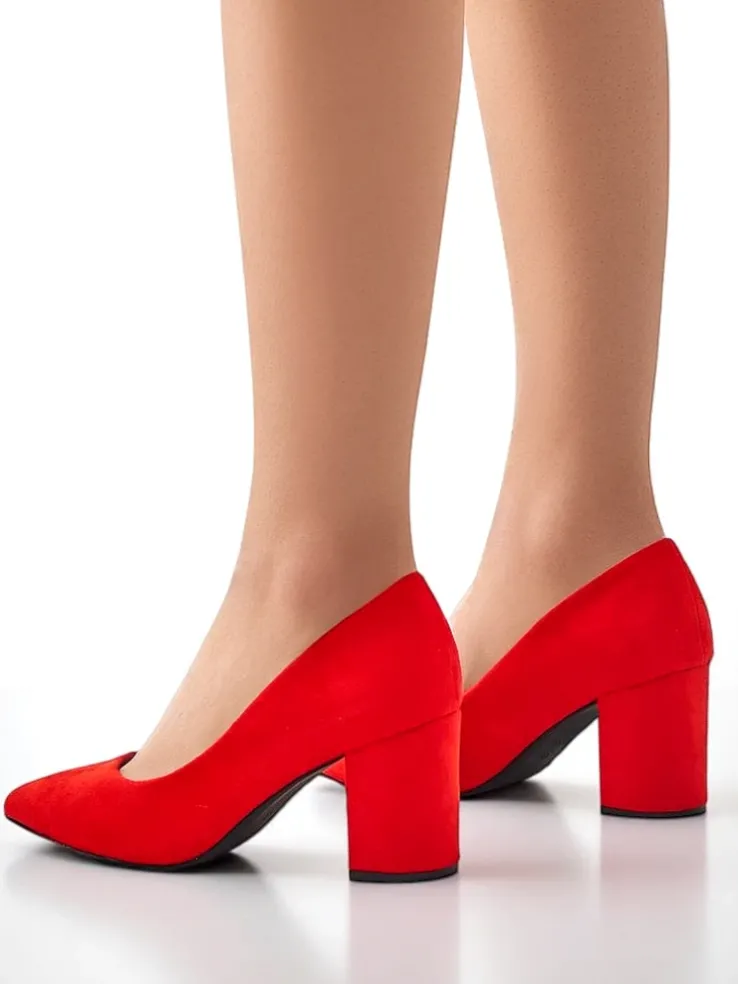 - Przepiękne damskie czółenka na słupku. Cholewka wykonana jest z zamszu ekologicznego, zaś środek wyłożony skórą ekologiczną. Nosek w szpic. Te buty dodadzą elegancji do każdego looku!