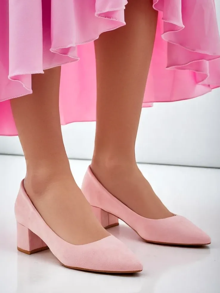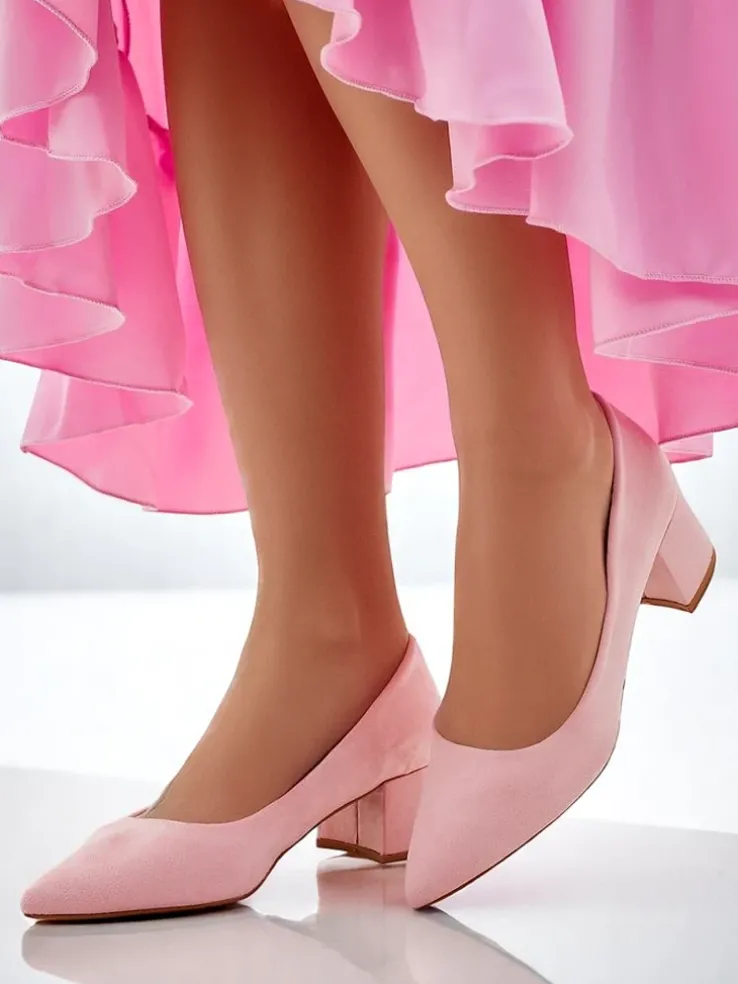 - Przepiękne damskie czółenka na niskim obcasie. Cholewka wykonana jest z zamszu ekologicznego, zaś środek wyłożony skórą ekologiczną. Nosek w szpic. Te buty dodadzą elegancji do każdego looku!