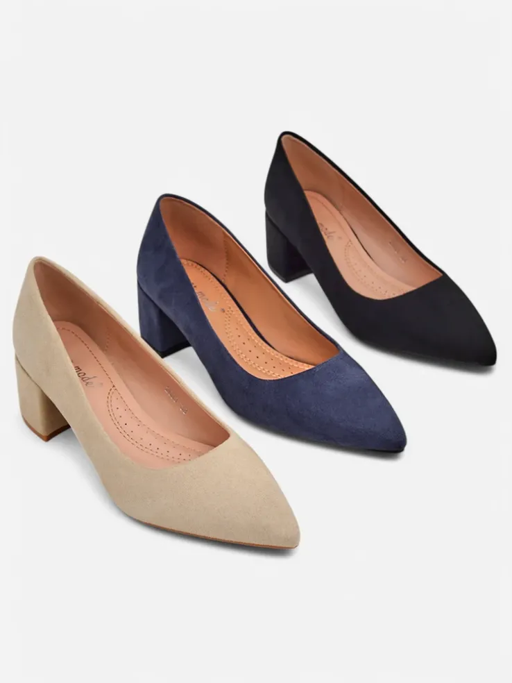 - Przepiękne damskie czółenka na niskim obcasie. Cholewka wykonana jest z zamszu ekologicznego, zaś środek wyłożony skórą ekologiczną. Nosek w szpic. Te buty dodadzą elegancji do każdego looku!