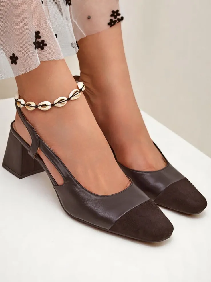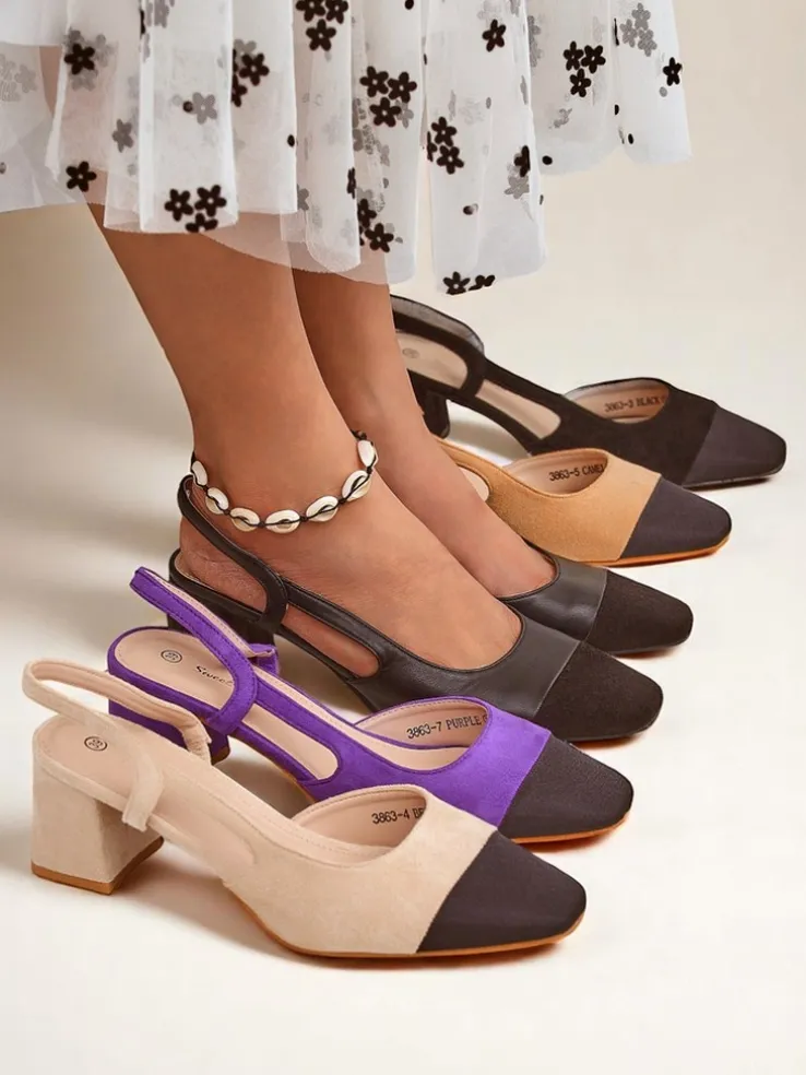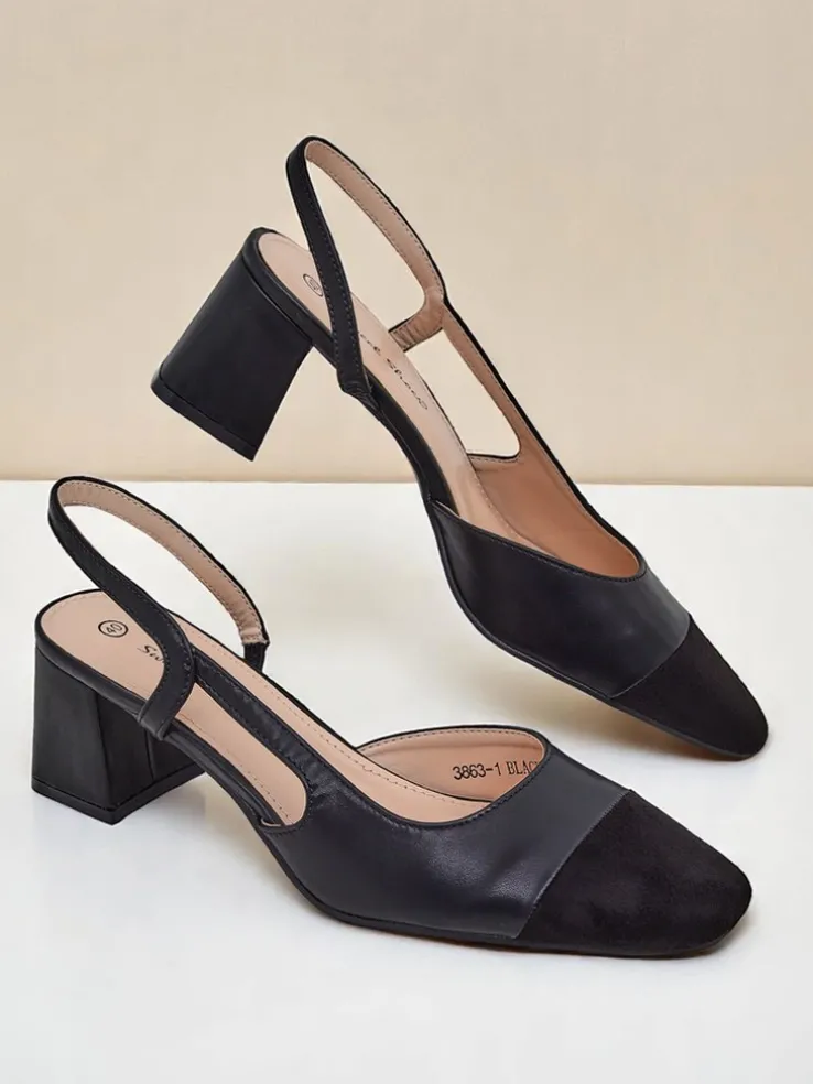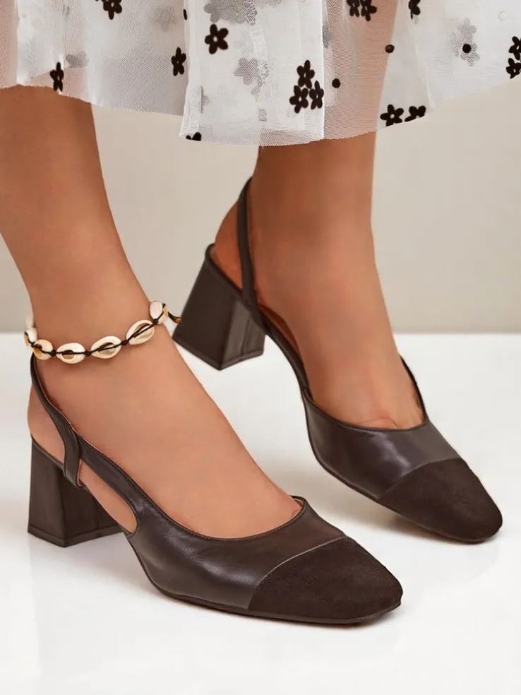 - Czółenka z eko zamszu, zapinane na sprzączkę. Wygodna, skórzana wkładka i stylowy czarny, kwadratowy nosek. Klasyka i komfort na co dzień i wyjątkowe okazje.