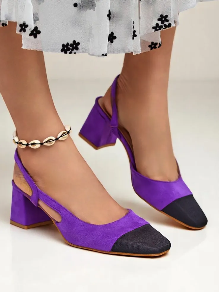 - Czółenka z eko zamszu, zapinane na sprzączkę. Wygodna, skórzana wkładka i stylowy czarny, kwadratowy nosek. Klasyka i komfort na co dzień i wyjątkowe okazje.