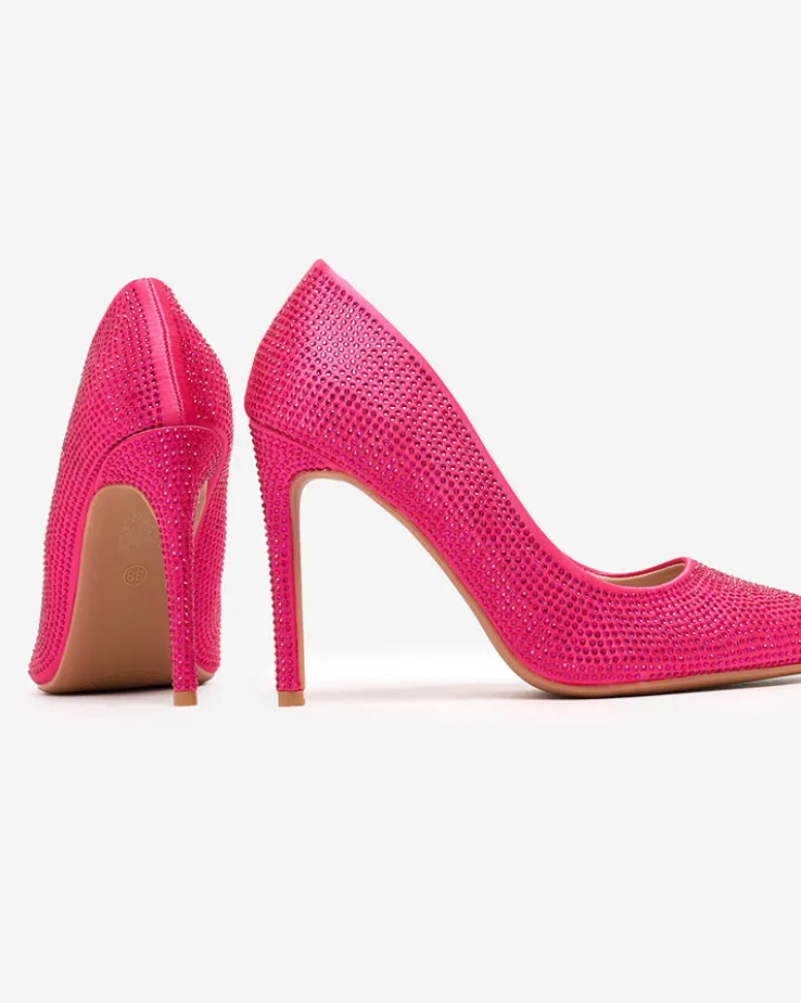 - Rewelacyjne damskie czółenka na szpilce. Cholewka wykonana jest z tkaniny pokrytej błyszczącymi cyrkoniami, zaś środek wyłożony skórą ekologiczną, nosek w szpic. Hit tego sezonu!