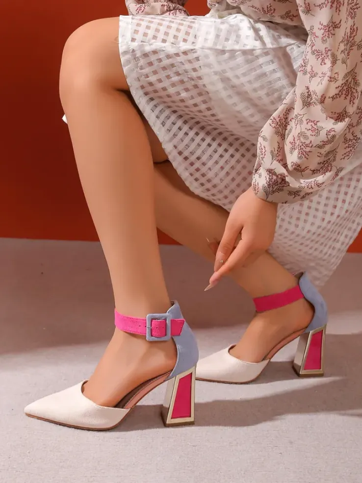 - Eleganckie damskie czółenka na ozdobnym słupku, wykonane z połączenia skóry ekologicznej i eko zamszu. Środek buta jest wyłożony skórą ekologiczną, a nosek spiczasty. Klasa i szyk mody!
