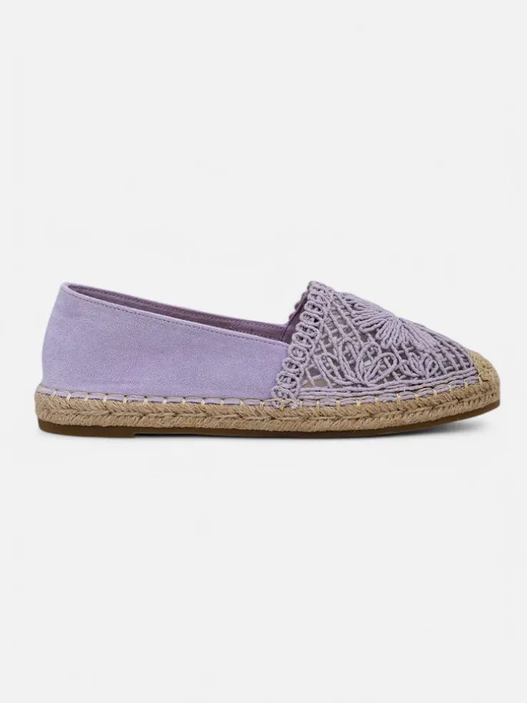 - Damskie ażurowe espadryle są wykonane całościowo z przyjemnej eko skóry zamszowej oraz tkaninowej wkładki. Płaska podeszwa zdobiona sznurkiem jutowym zapewnia wygodę. Doskonały dodatek do letnich stylówek!