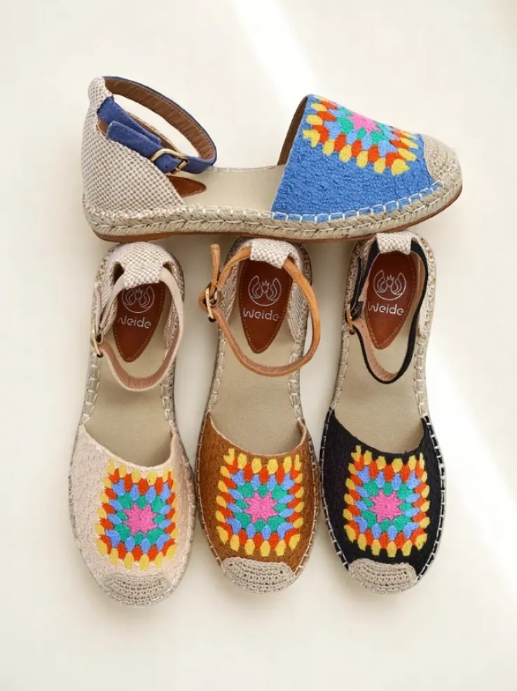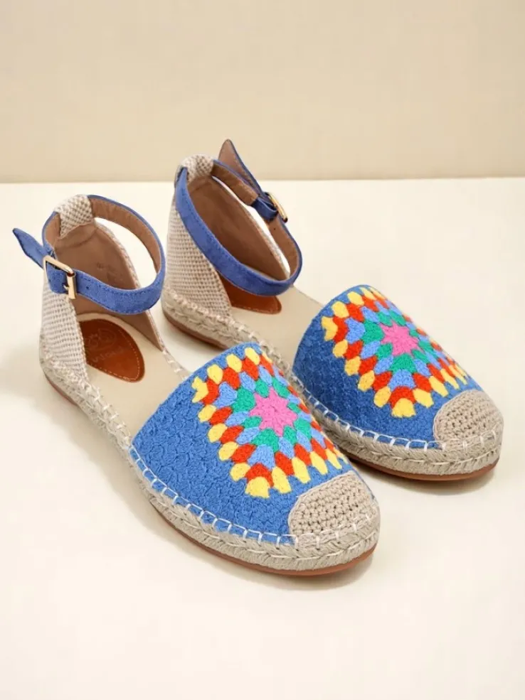 - Wyjątkowe damskie espadryle z ozdobnym haftem. Model całościowo wykonany z przyjemnej tkaniny. Płaska podeszwa zdobiona sznurkiem jutowym zapewnia wygodę. Zapinane na sprzączkę. Doskonały dodatek do letnich stylówek!