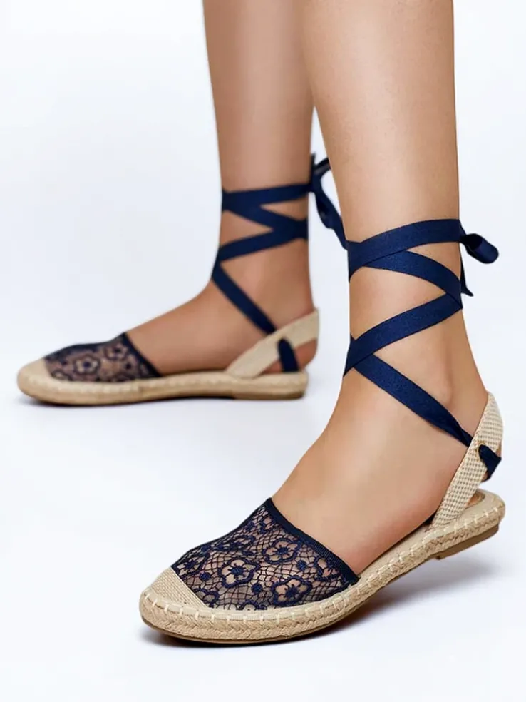 - Lekkie damskie espadryle wykonane z tkaniny a’la siateczka. Podeszwa zdobiona sznurkiem jutowym, a miękka wkładka pokryta jest materiałem tkaninowym. Posiadają okrągły nosek i ozdobne wiązanie. Idealne na lato!