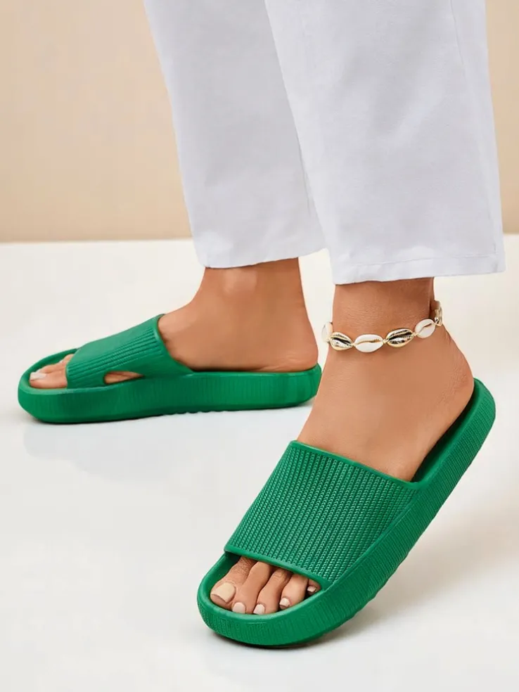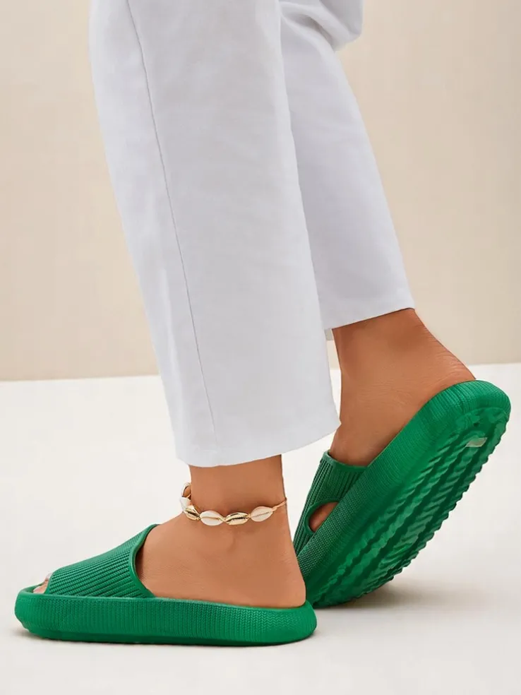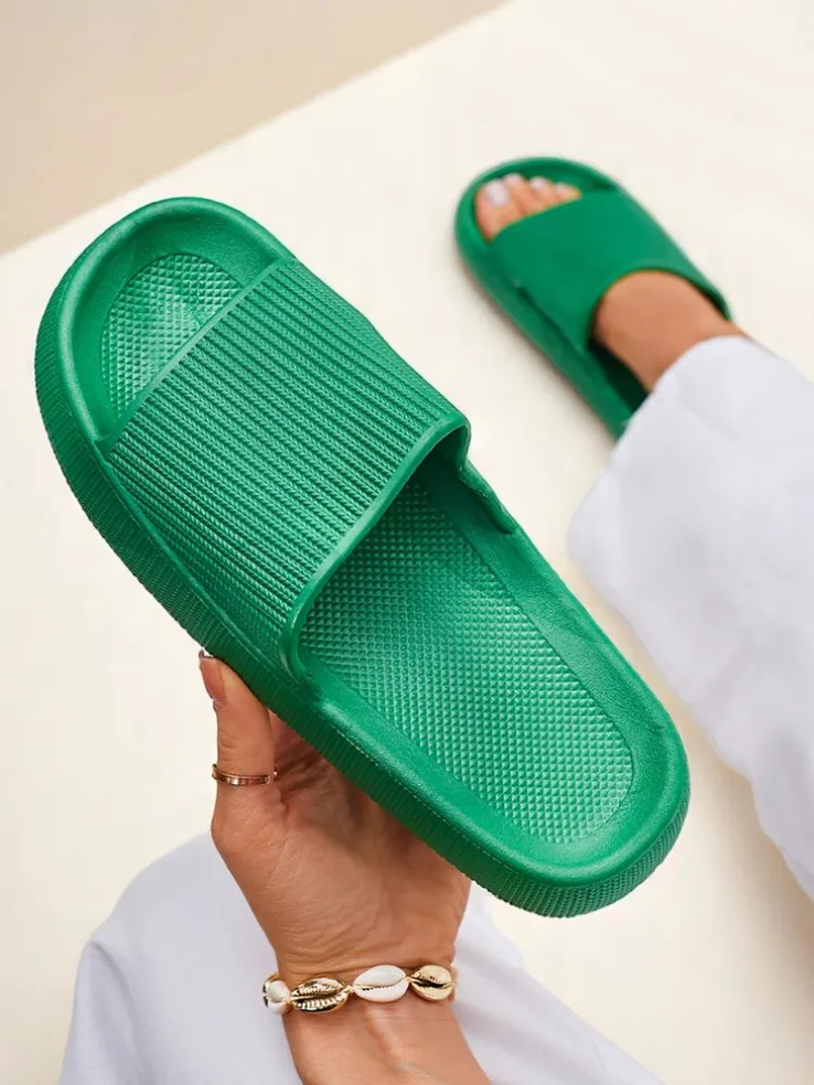 - Świetne damskie gumowe klapki na płaskiej podeszwie. Idealny wybór na wakacje!