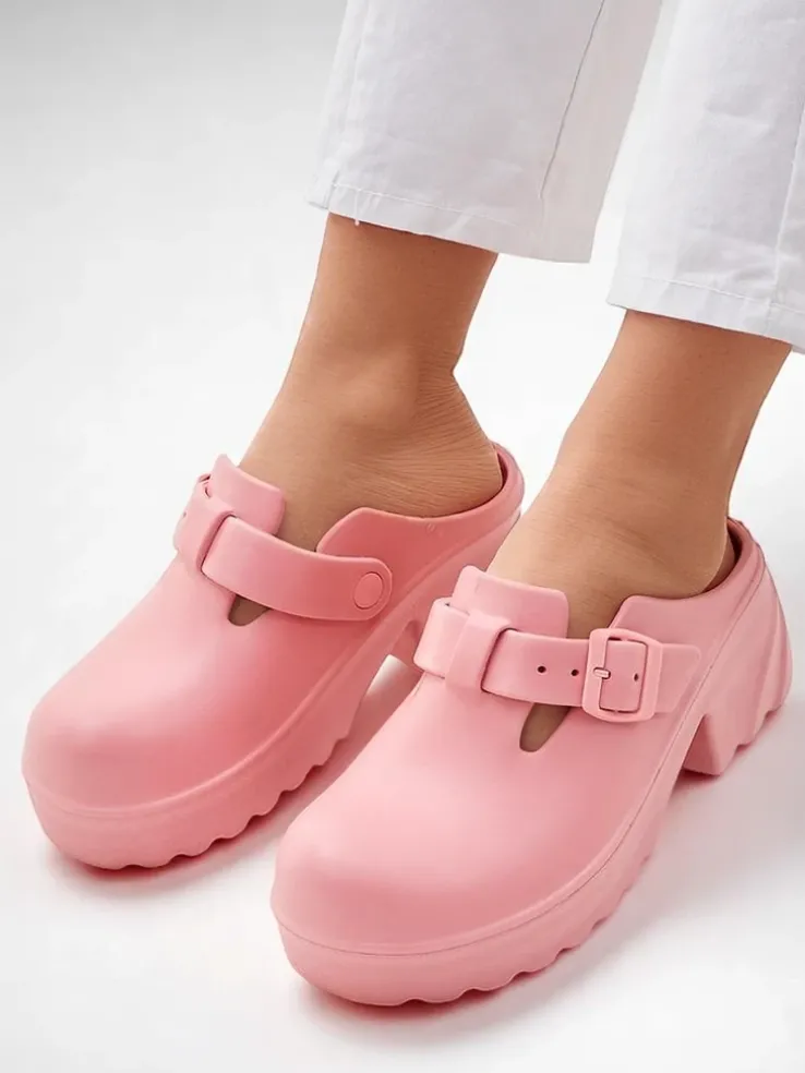 Royalfashion Damskie gumowe klapki na obcasie Voxones