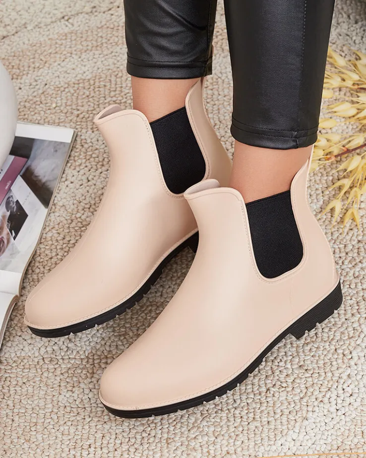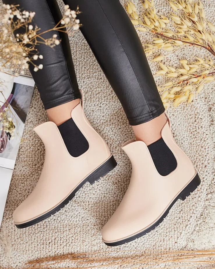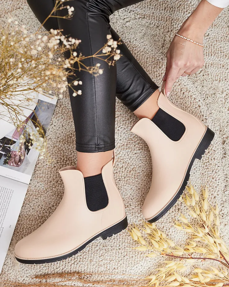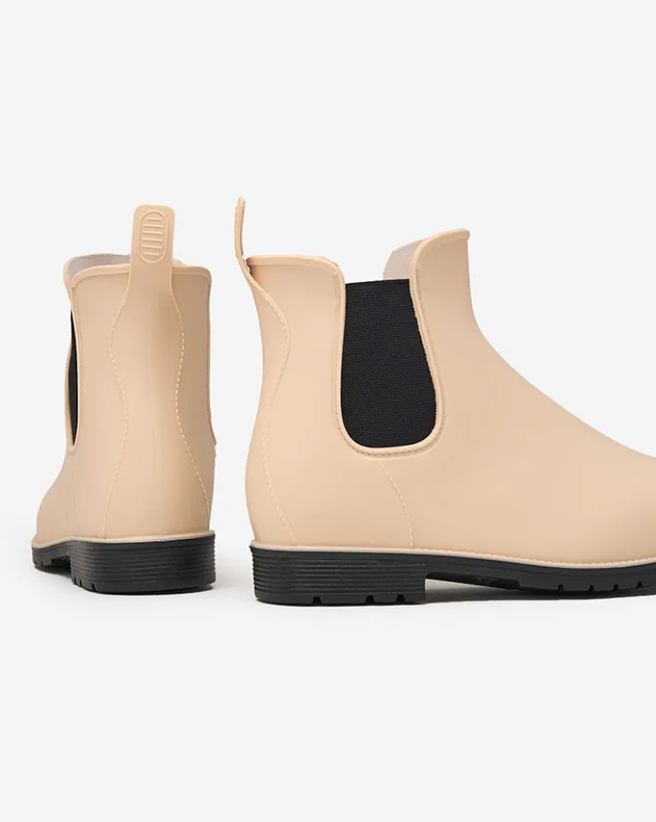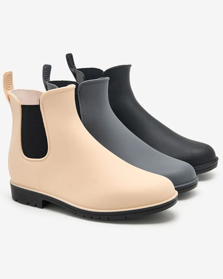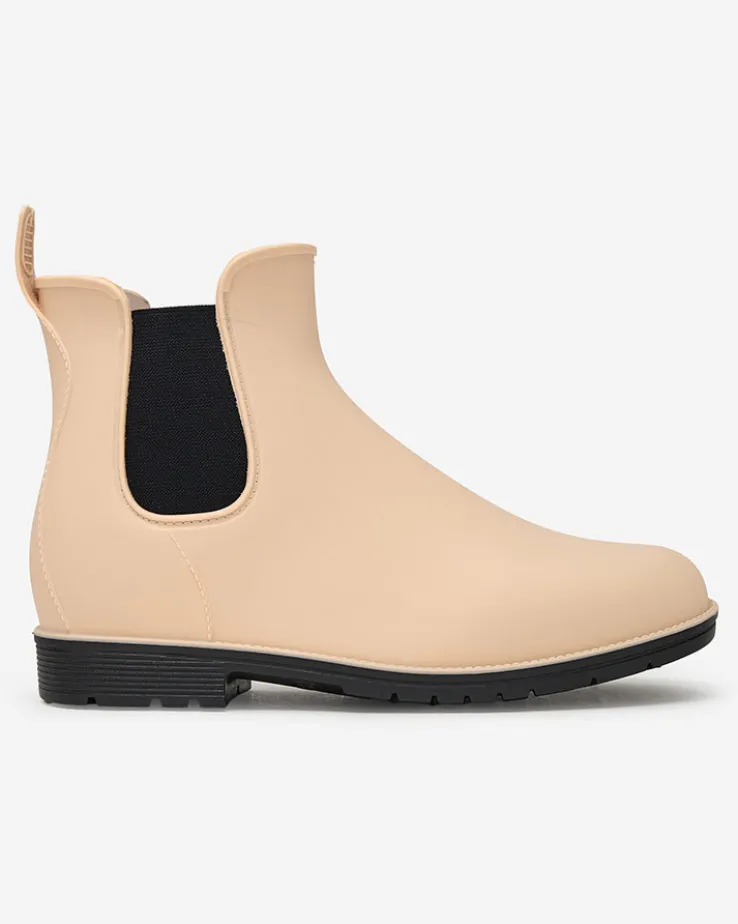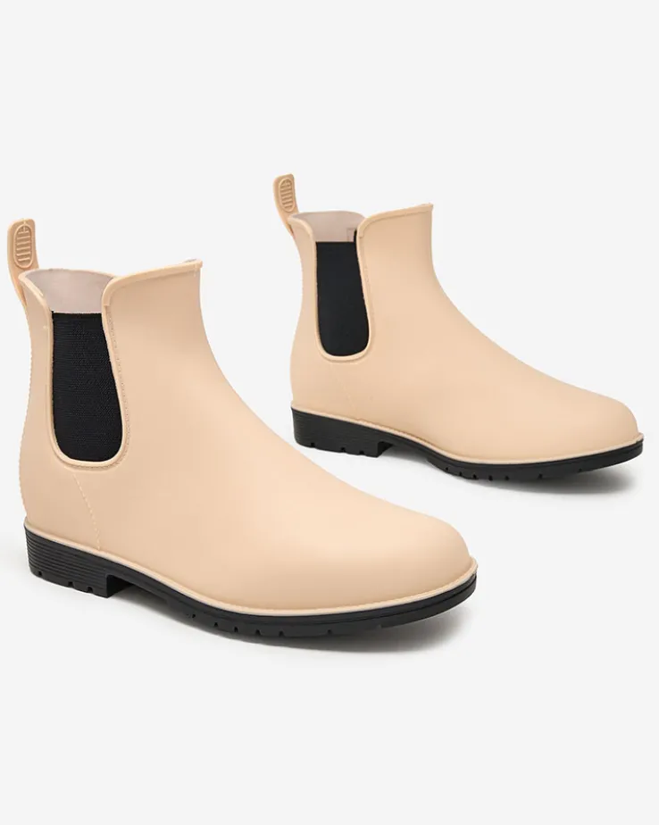 - Klasyczne damskie kalosze na płaskim obcasie, wykonane z materiału gumowego. W środku wkładka z tkaniny. Idealne na jesienne deszczowe dni!