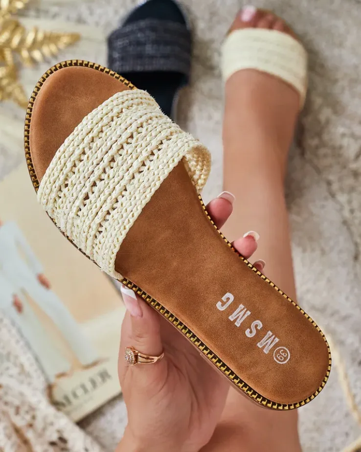 - Świetne damskie klapki na płaskiej podeszwie. Wykonane z tkaniny i eko skórzanej wkładki. Idealny wybór na wakacje!