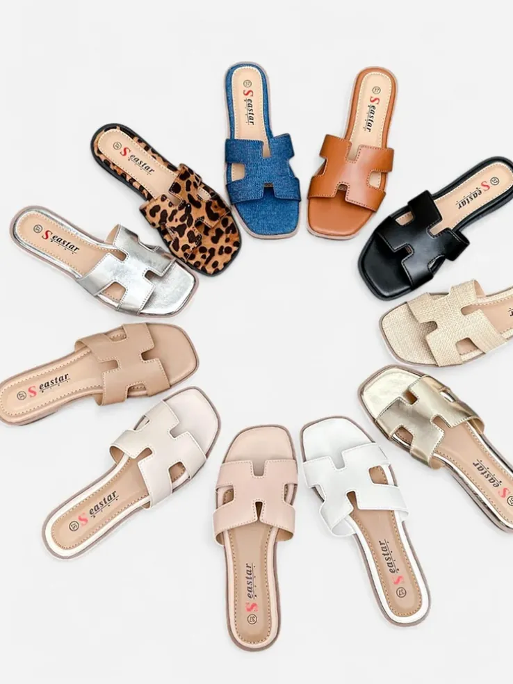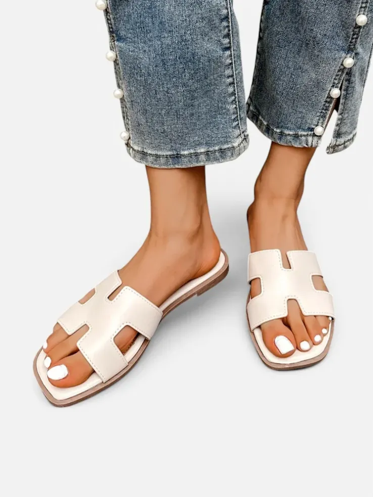 - Casualowe damskie klapki na płaskiej podeszwie. Wykonane w całości z ekologicznej skóry. Idealny wybór na wakacje!