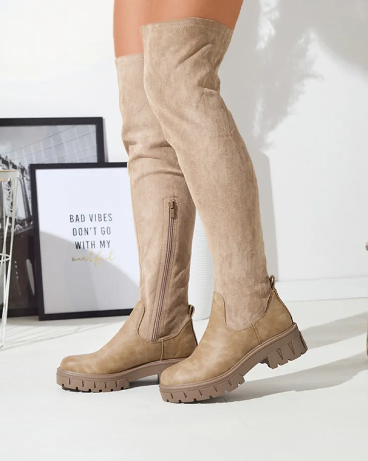 - Modne damskie kozaki na płaskim obcasie wykonane z połączenia skóry ekologicznej i eko-zamszowej. Model wsuwany i zapinany na suwak do połowy łydki. Cholewka nie jest ocieplana i nie posiada ściągacza na górze. KHAKI DAMSKIE NIEOCIEPLANE KOZAKI LIKI