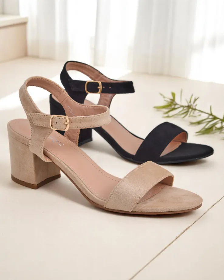 - Damskie sandałki na słupku – to idealny pomysł na gorące letnie dni. Model wykonany ze skóry ekologicznej zamszowej i eko skórzanej wkładki. Obuwie zapinane na sprzączkę, posiada zaokrąglony nosek. Połączenie stylu i wygody!