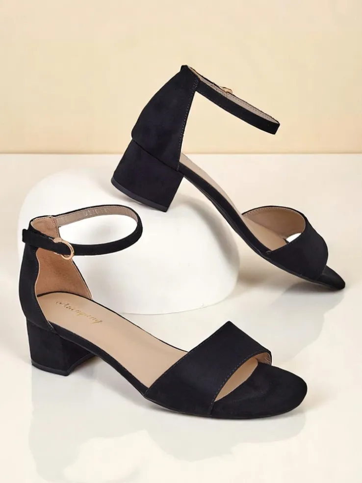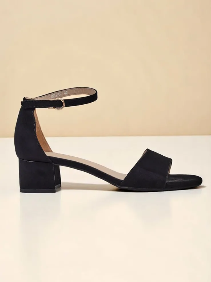 - Sandały na niskim obcasie z eko zamszu, z wygodną wkładką z eko skóry. Zapinane na sprzączkę, idealne na lato – eleganckie, wygodne i lekkie w codziennym noszeniu.