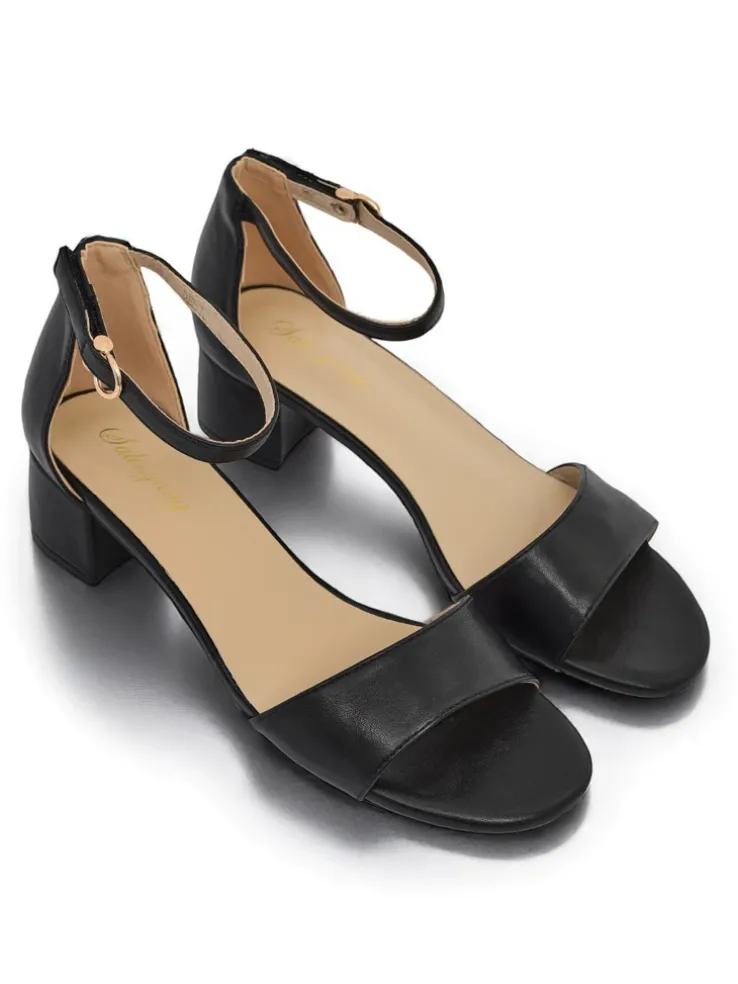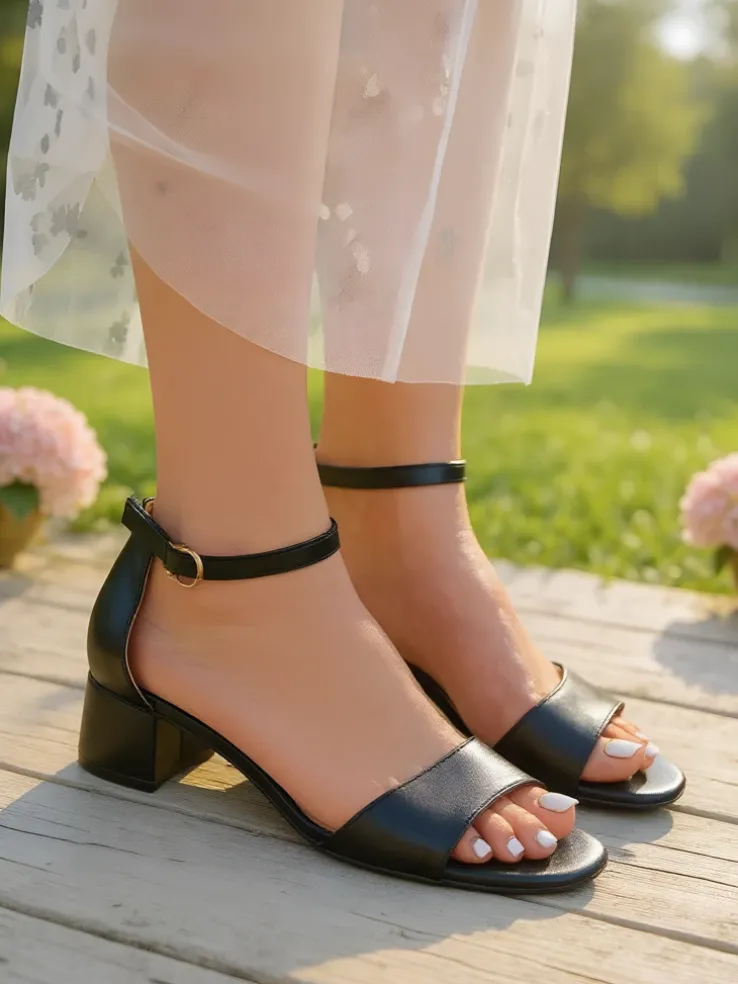 - Sandały na niskim obcasie z eko skóry, z wygodną wkładką z eko skóry. Zapinane na sprzączkę, idealne na lato – eleganckie, wygodne i lekkie w codziennym noszeniu.