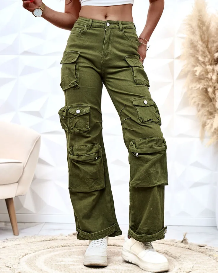 Royalfashion Damskie szerokie spodnie typu bojówki