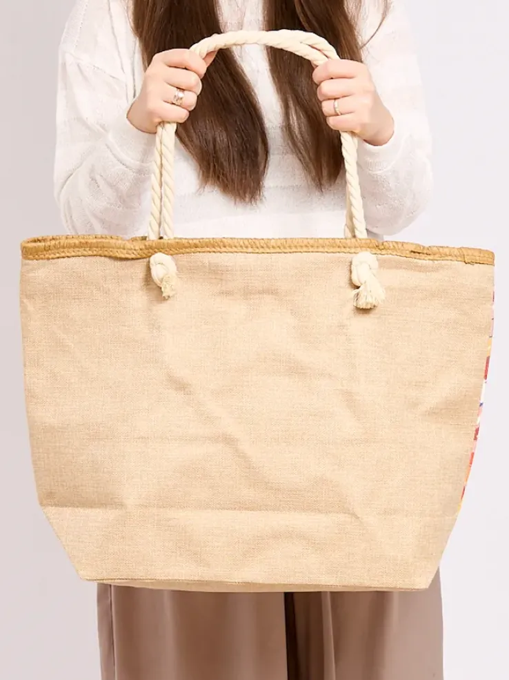 - Stylowa torba materiałowa wykończona printem. Torebka z dłuższymi rączkami, zapinana na zamek, w środku posiada 1 kieszonkę. Nada się świetnie na plażę!