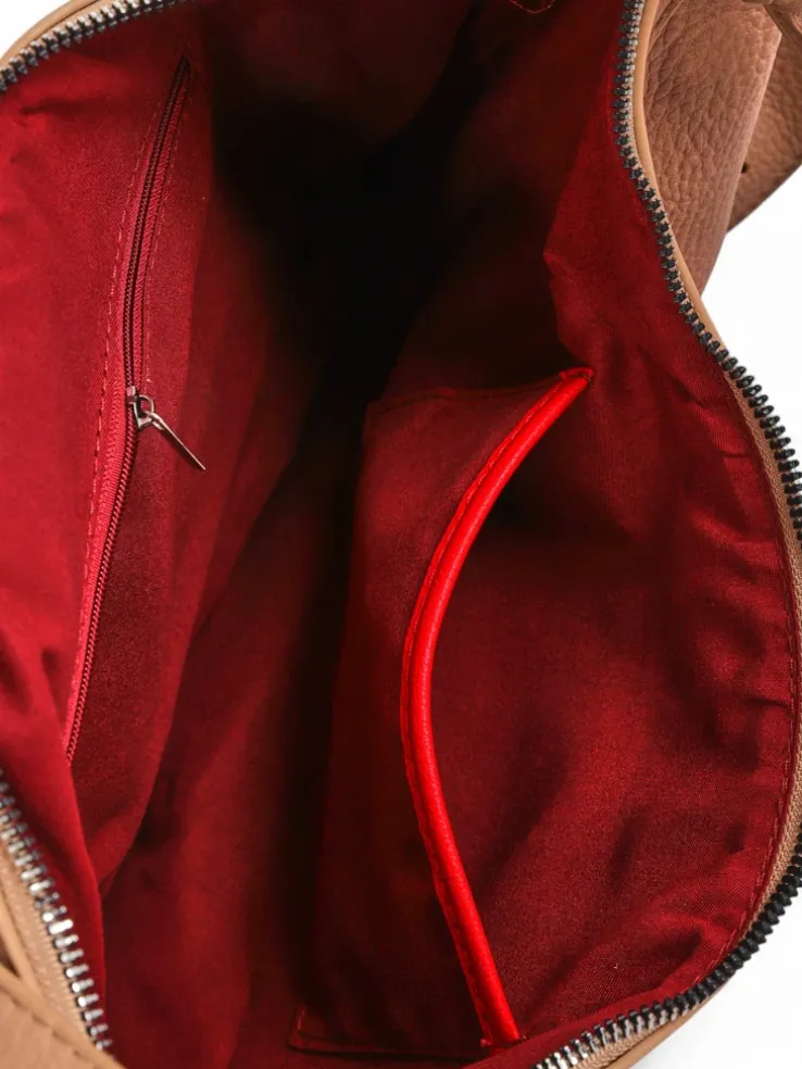 - Duża półokrągła shopperka z eko skóry, z 1 komorą i 2 kieszonkami. Regulowany pasek dla wygody. Stylowa i pojemna – idealna na zakupy, uczelnię lub codzienne obowiązki.