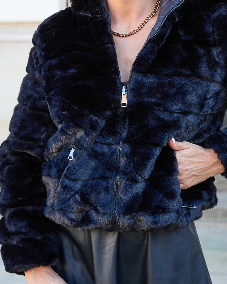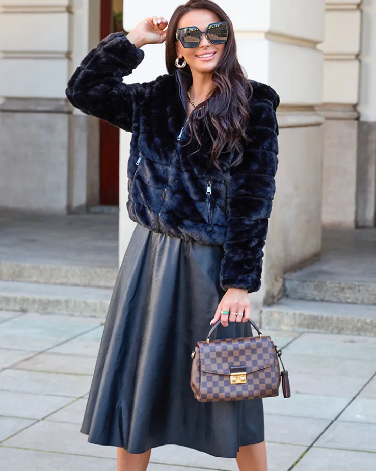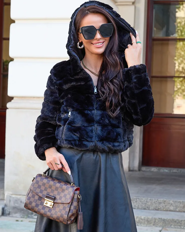 Royalfashion Dwustronna kurtka damska z futerkiem w kolorze czarnym