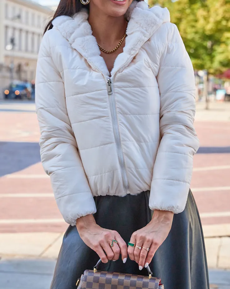- Rewelacyjna dwustronna kurtka damska wykonana ze śliskiej tkaniny i przyjemnego, miękkiego materiału a’la futerko. Kurtka posiada delikatne wypełnienie syntetyczne. Model z kapturem, 2 zasuwanymi kieszeniami oraz zapięciem na suwak. Hit tego sezonu!
