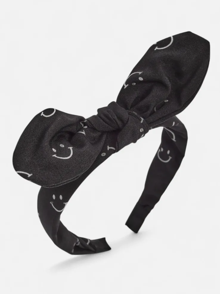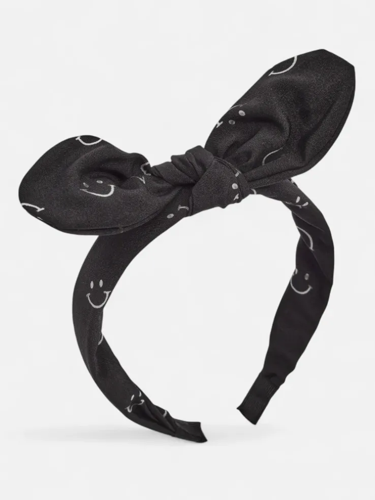 - Urocza dziecięca opaska do włosów z kokardką ozdobioną printem w uśmiechnięte buźki. Wygodna, elastyczna i idealna do codziennych stylizacji – doda radości każdemu dziecięcemu lookowi!