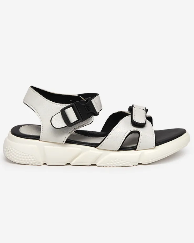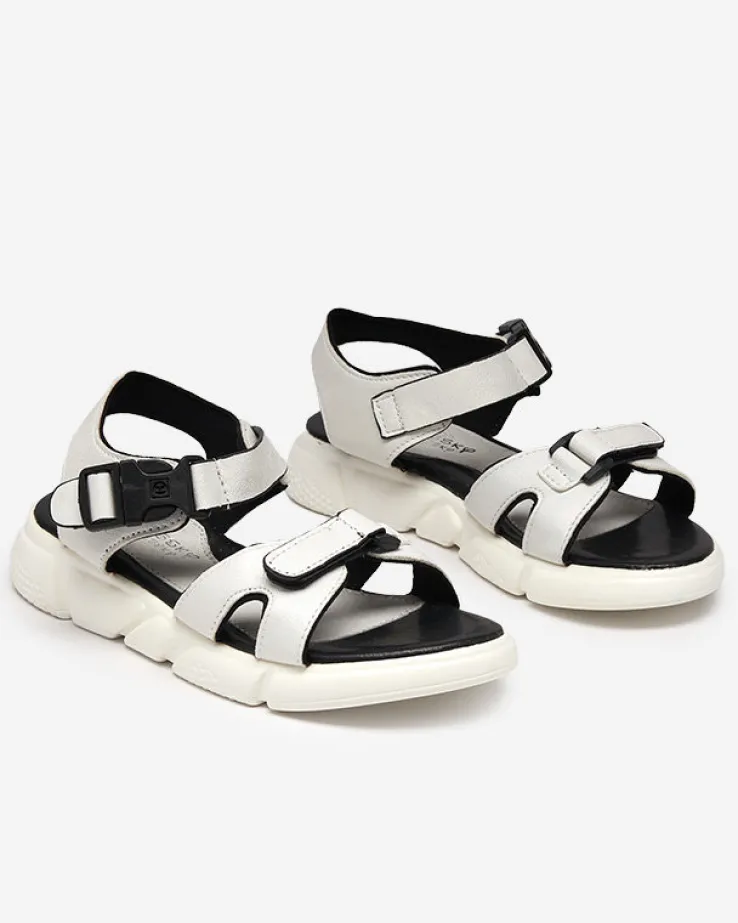 Royalfashion Dziecięce błyszczące sandały w kolorze białym Leepe