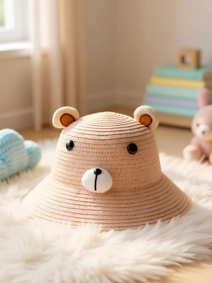 - Uroczy dziecięcy kapelusz słomkowy z naszywką misia. Lekki, przewiewny i idealny na lato. Chroni przed słońcem i dodaje stylu każdej małej główce. Idealny na plażę i spacery!