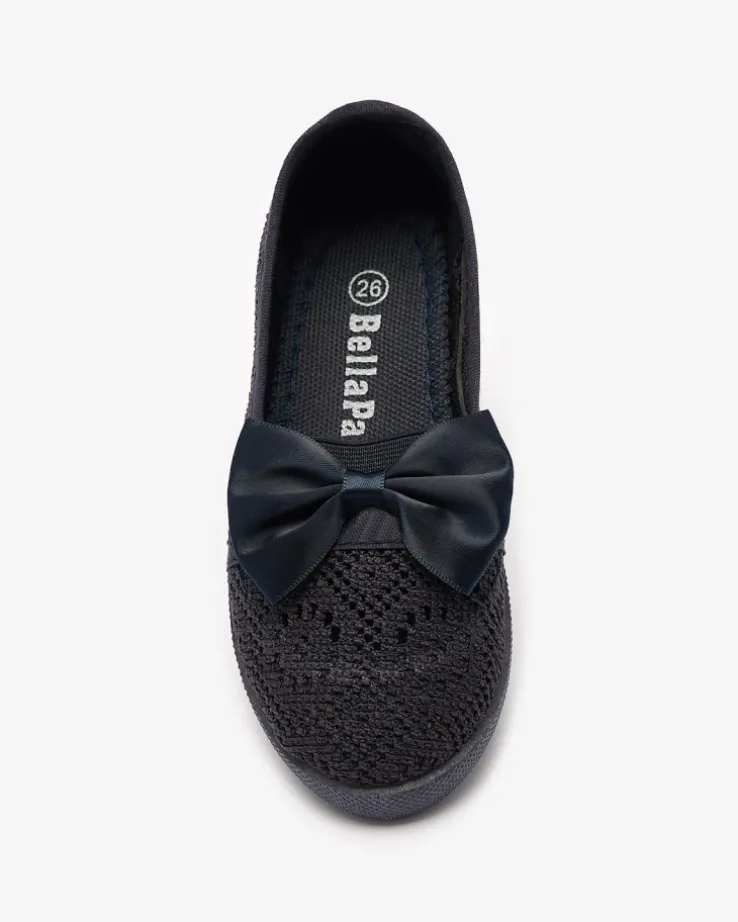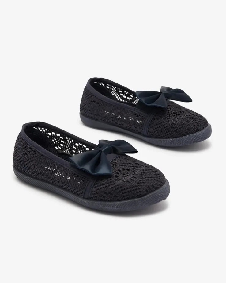 - Dziecięce tenisówki typu slip on wykonane z tkaniny o koronkowym wykończeniu. Cholewka zdobiona satynową wstążką. Świetne buty dziecięce do wielokolorowej sukienki!