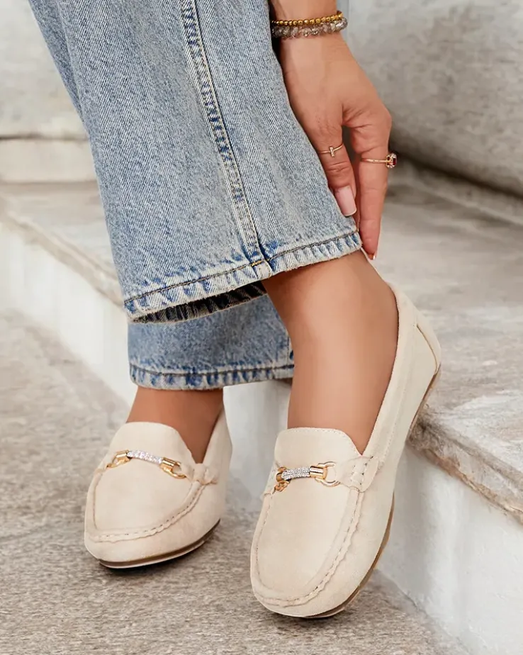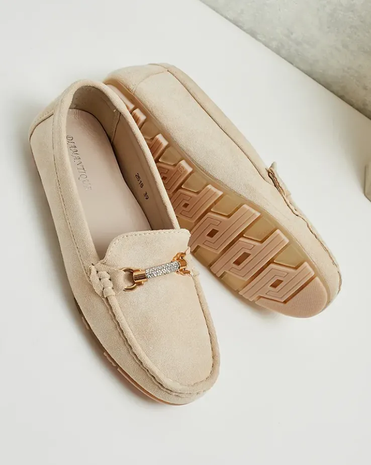 - Wyjątkowe damskie mokasyny na płaskiej podeszwie. Klasyczny model wykonany z zamszowej skóry ekologicznej oraz wkładki ze skóry ekologicznej. Idealna baza na co dzień!