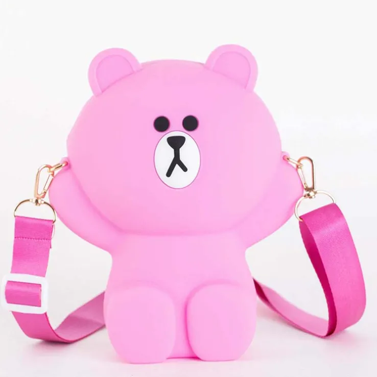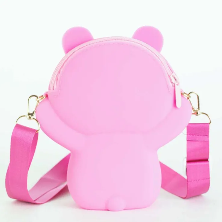- Prześliczna torebka z tworzywa silikonowego w kształcie misia. Model zapinany na zamek. W środku jedna komora bez dodatkowych kieszeni. W komplecie długi pasek z możliwością regulacji. Świetną ozdobą do codziennych stylizacji.