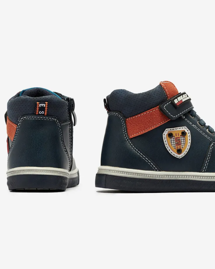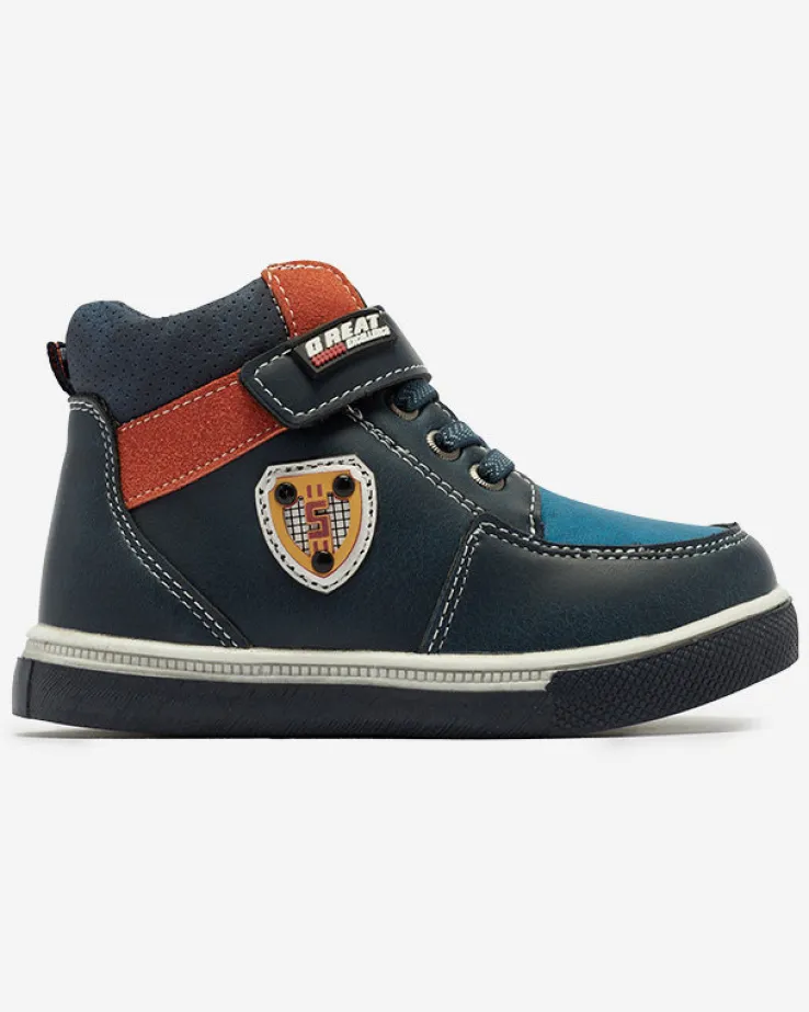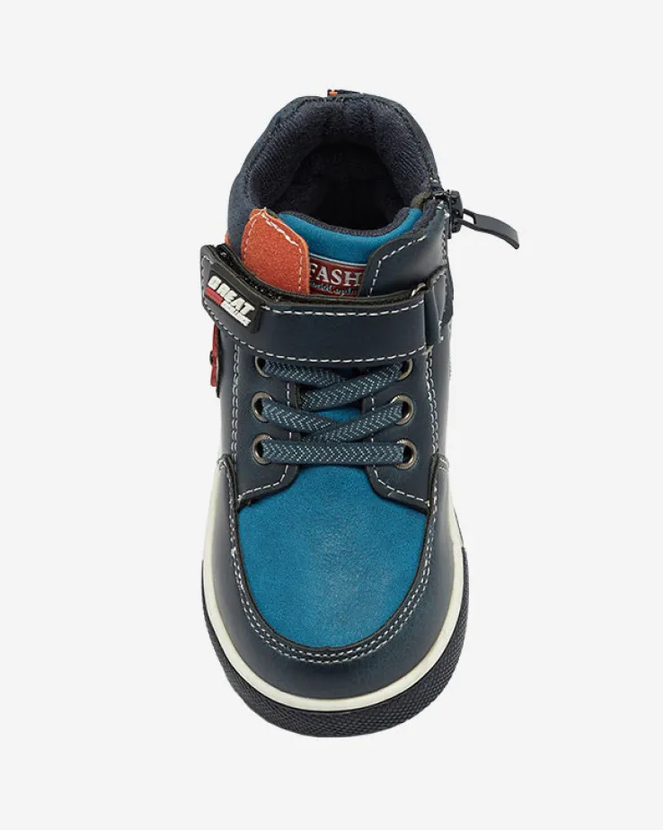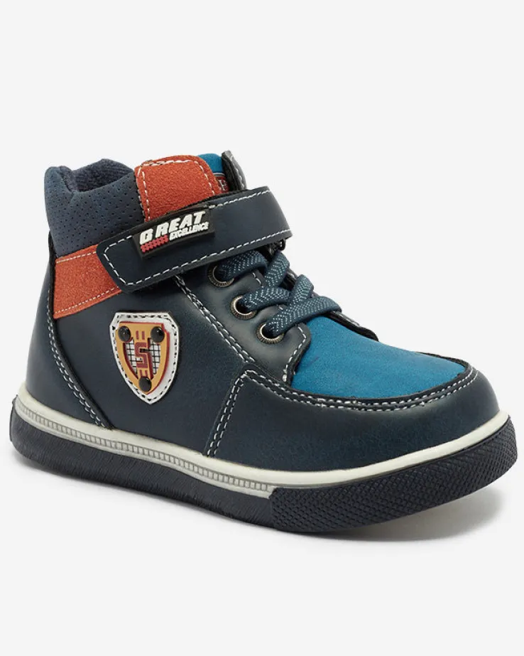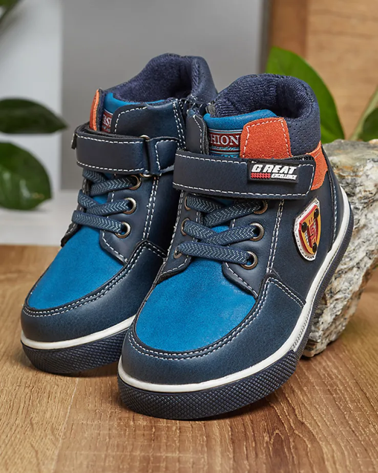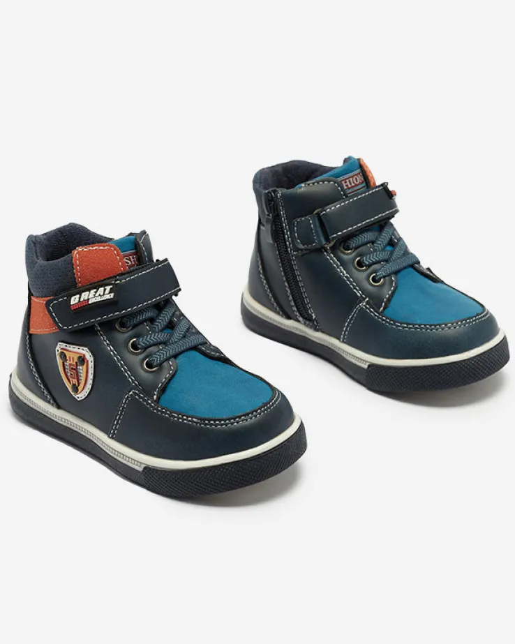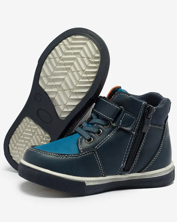 - Stylowe chłopięce botki na płaskiej podeszwie zapinane na zamek i rzepy, wykonane ze skóry ekologicznej. Środek buta jest wyłożony tkaniną. Idealne na jesień! GRANATOWE BUTY ZIMOWE BOTKI DZIECIĘCE WIASIO