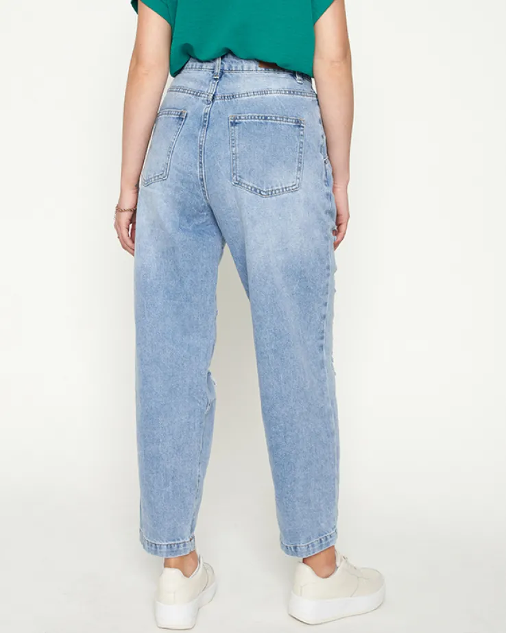 - Spodnie jeansowe typu boyfriend z mocnymi przetarciami na nogawkach. Zapinane na zamek i guzik, posiadają cztery kieszenie. Wygodne, modne i efektowne! UWAGA: Dokładność pomiaru (+/-) 1 cm.